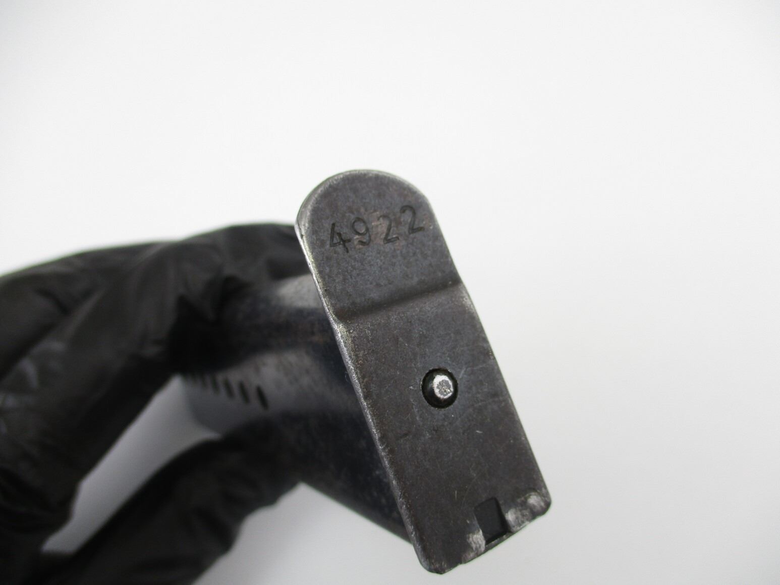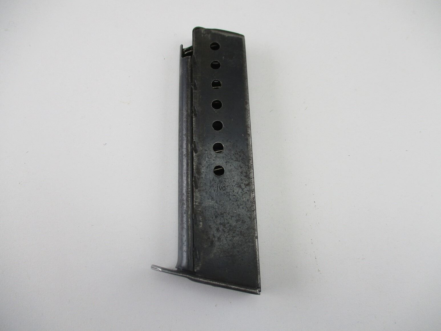 WW.II GERMAN WALTHER P.38 PISTOL MAGAZINE, 9MM, 8 ROUND MAG, BLUED STEEL, WAA 706 MARKED ON BACK OF MAG WITH "JVD", #4922 ON BOTTOM OF MAG.