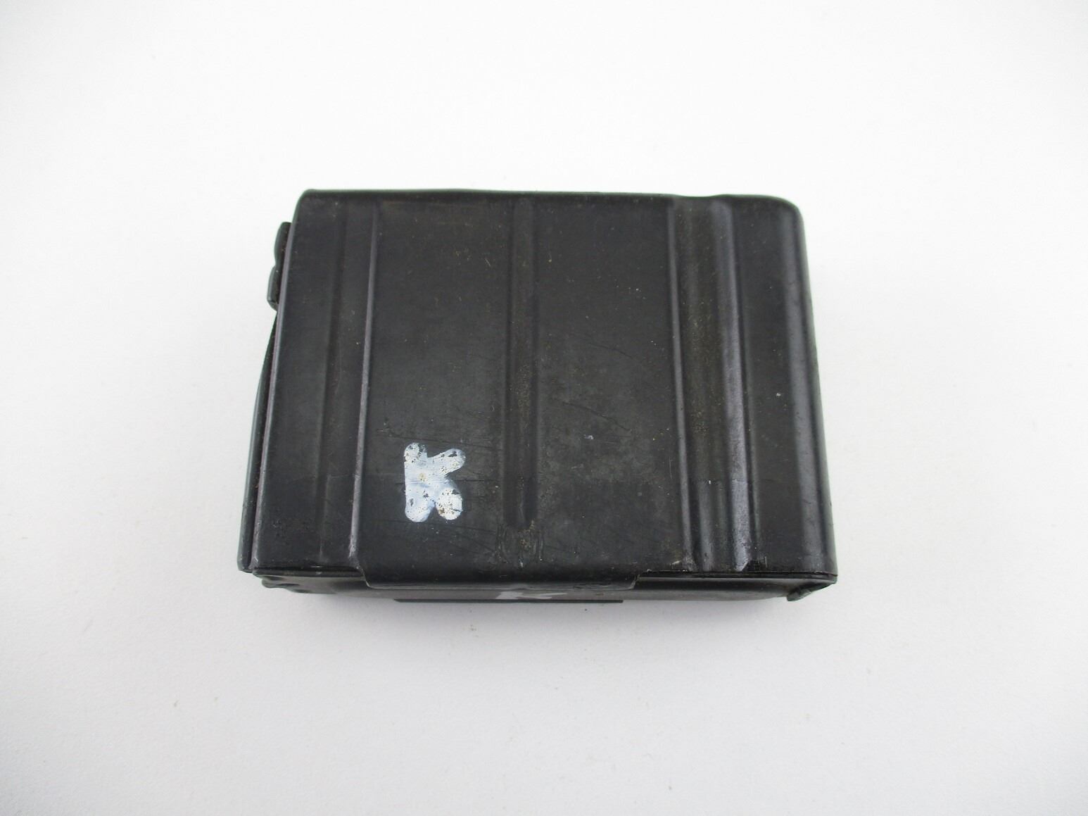 FN FAL METRIC PATTERN RIFLE MAGAZINE , 7.62N, 5 ROUND MAG, BLUED STEEL, MARKED "K" ON SIDE & BOTTOM OF MAG.