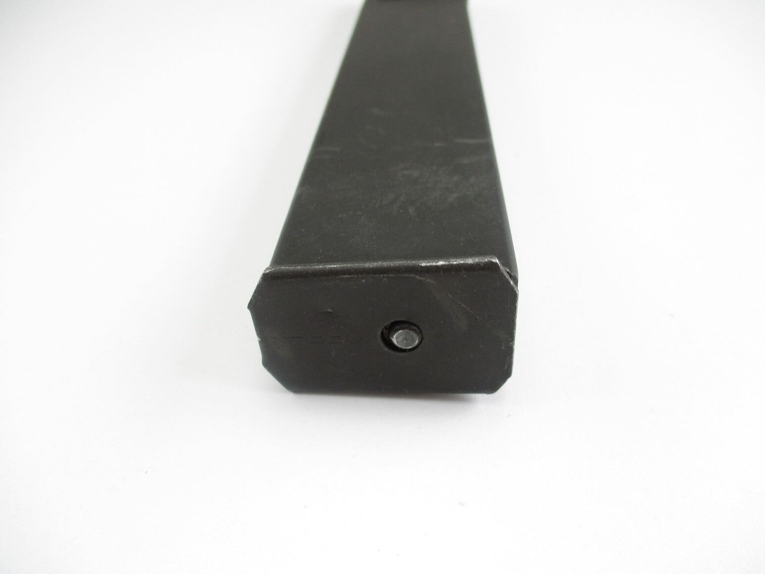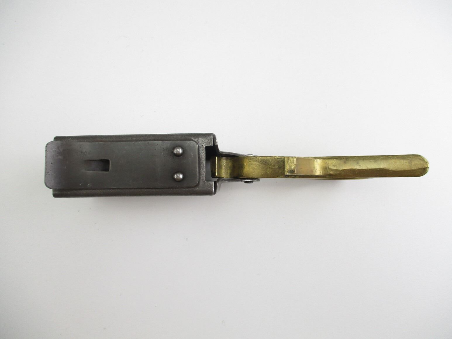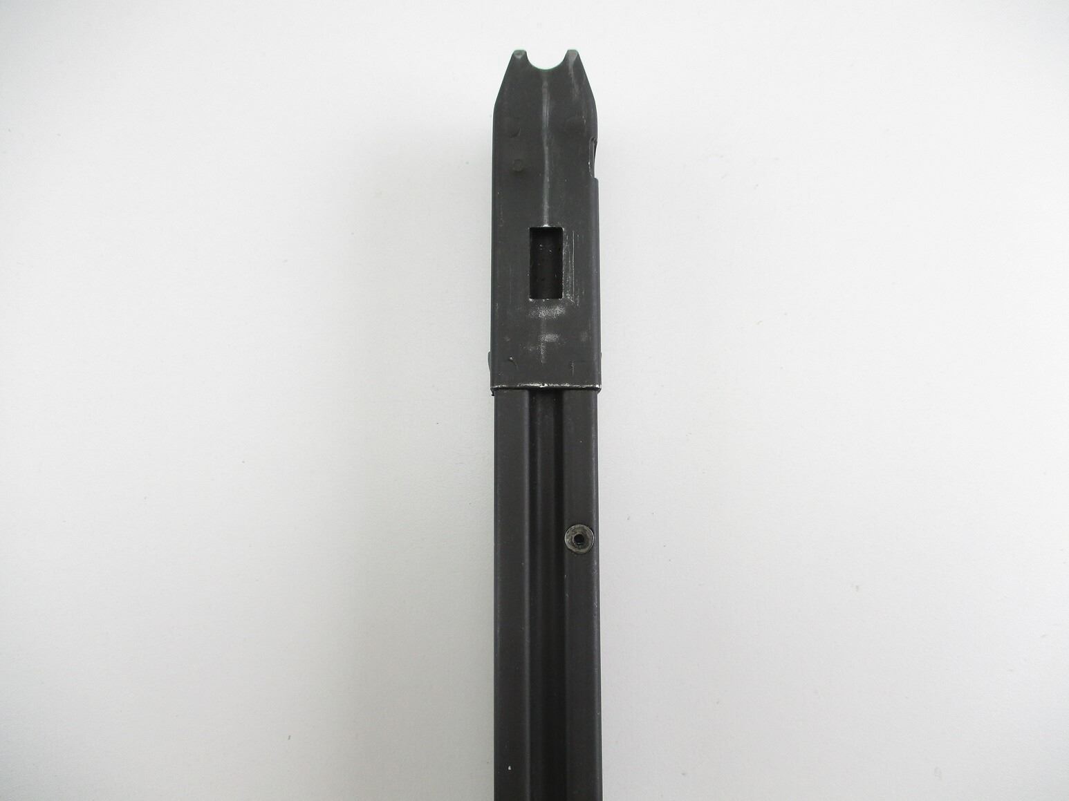 CANADIAN STEN SMG MAGAZINE & LOADER, (1) 9MM, 5/32 ROUND PINNED MAG, STEEL, LB & C-BROAD ARROW MARKED, INCLUDES MAG LOADER, MARKED WITH BROAD ARROW.