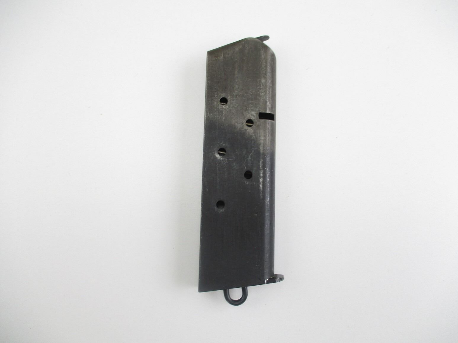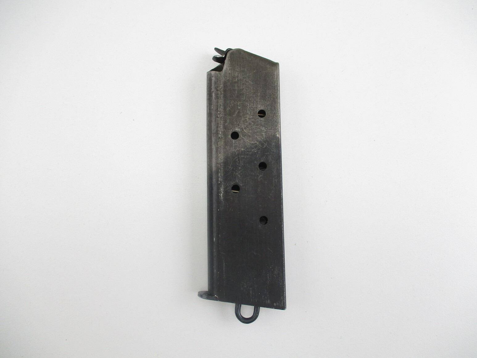 COLT 1911 TWO-TONE PISTOL MAGAZINE , .45 ACP, 7 ROUND MAG, BLUED STEEL, TWO-TONED, WITH LANYARD LOOP, APPEARS UNMARKED.