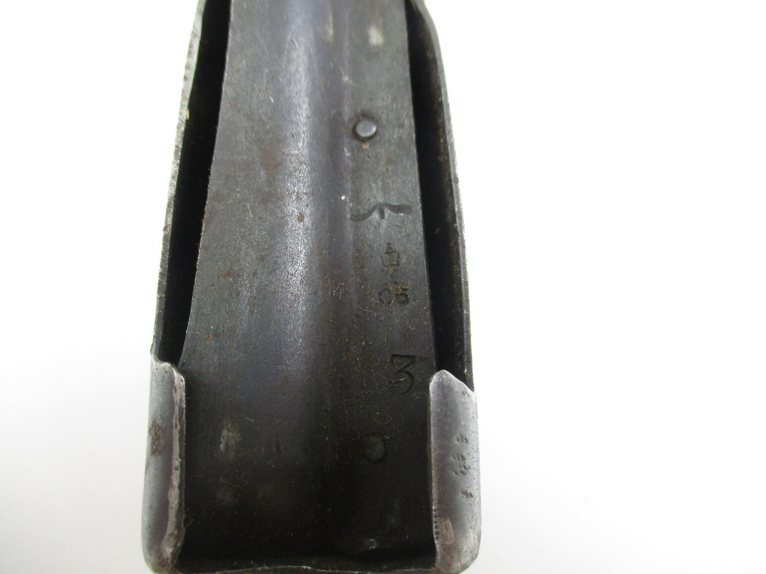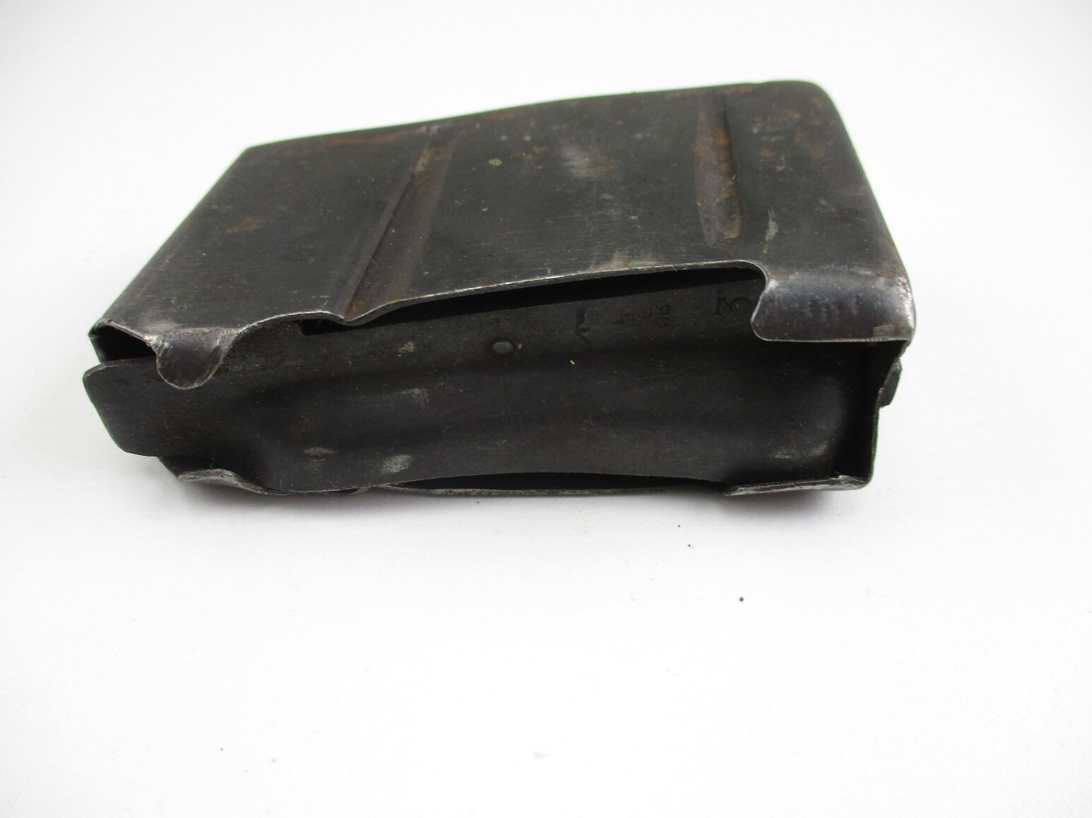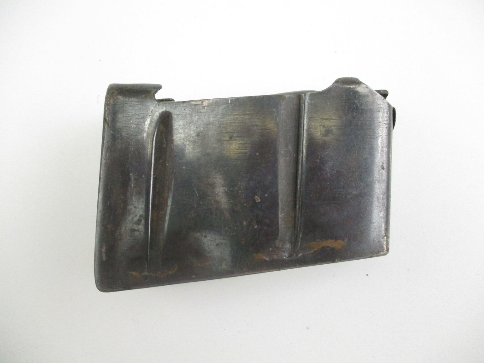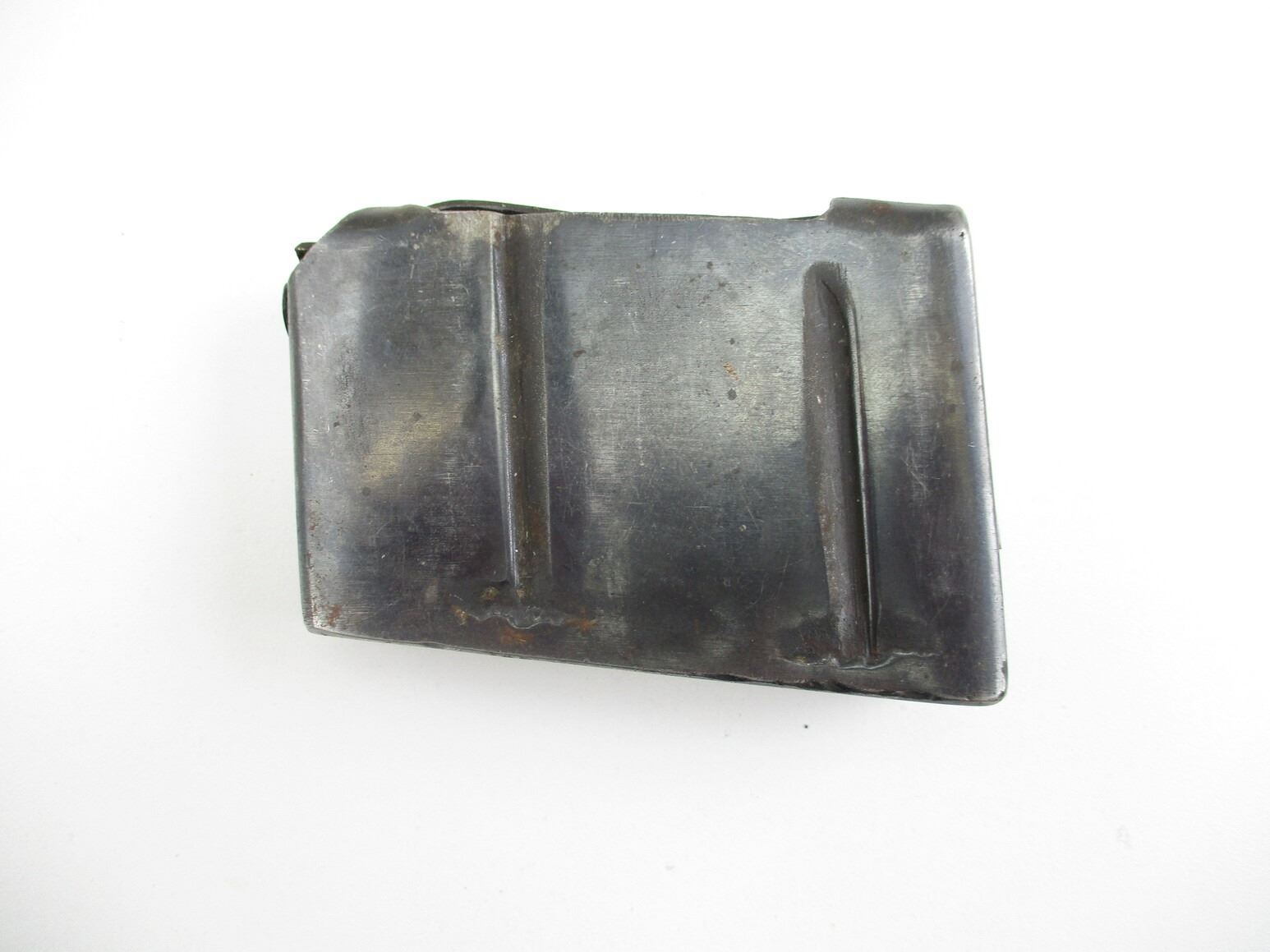 LEE ENFIELD NO.1 MK.3 SPORTER RIFLE MAGAZINE , .303 BR, 5 ROUND MAG, BLUED STEEL, BROAD ARROW MARK ON FOLLOWER, WITH VARIOUS OTHER MARKINGS.