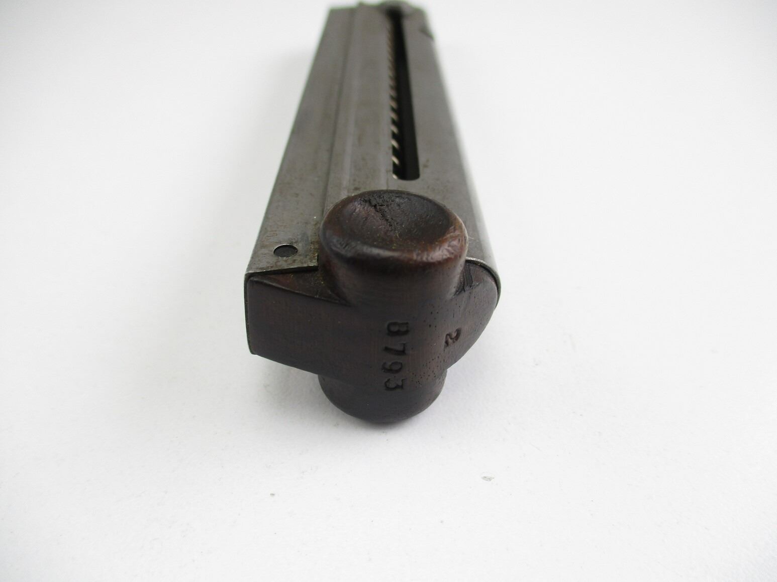 P08 LUGER PISTOL MAGAZINE, 9MM, 8 ROUND MAG, STEEL BODY, WOODEN BOTTOM, MARKED 2 8793 ON BOTTOM OF MAG.