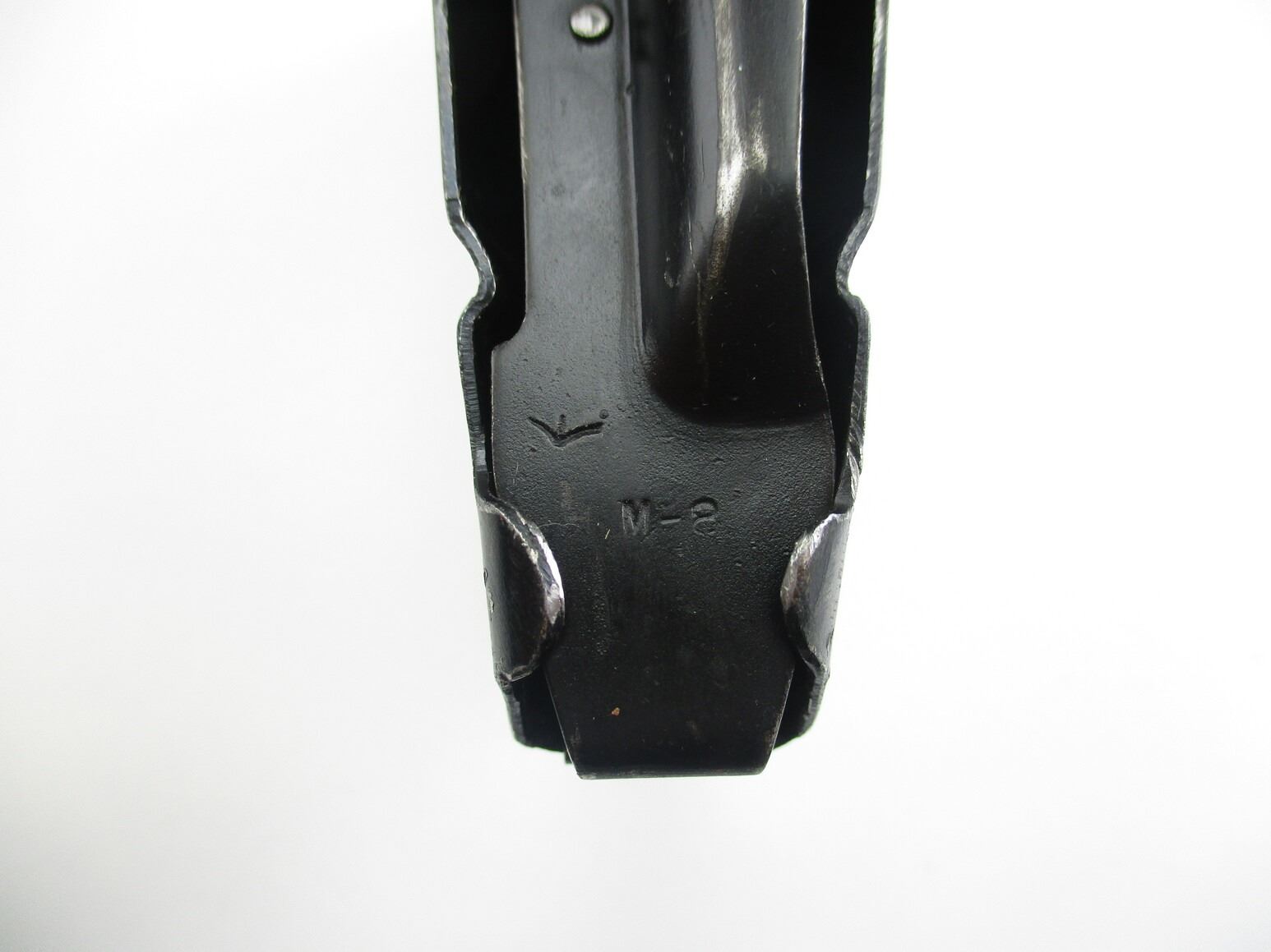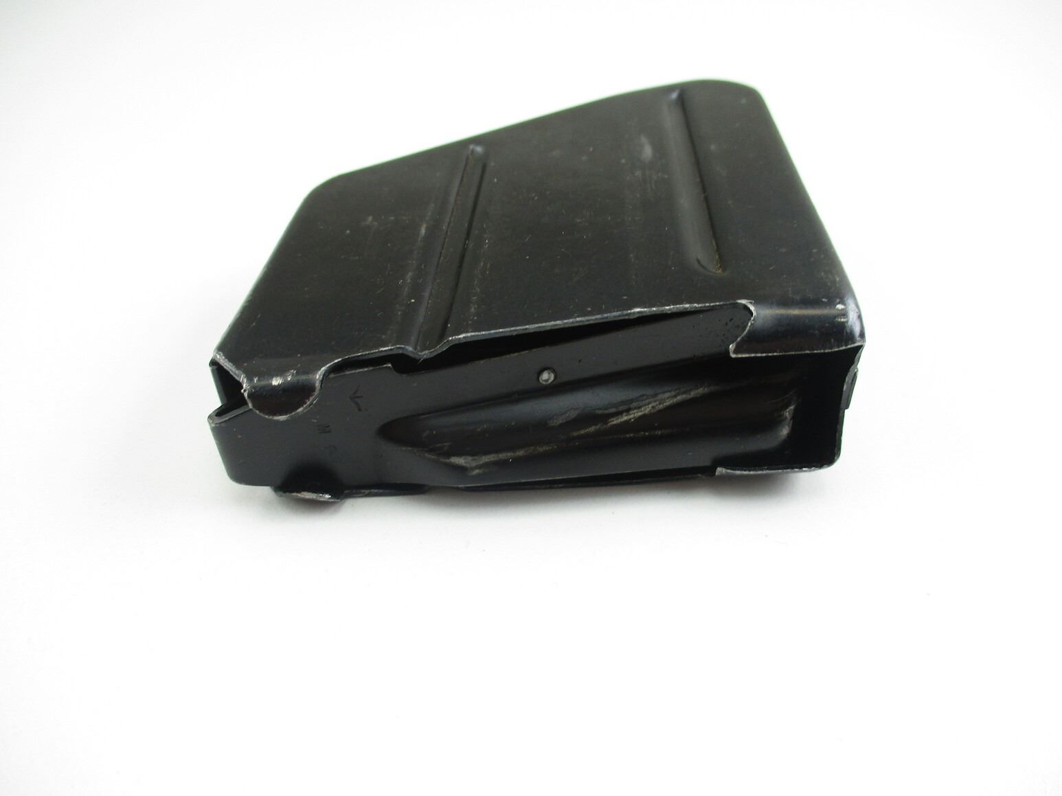 LEE ENFIELD NO.4 MK.1 RIFLE MAGAZINE , .303BR, 10 ROUND MAG, BLUED STEEL, BROAD ARROW MARKED ON FOLLOWER, M-8 MARKED ON FOLLOWER, ESS MARKED ON BACK OF MAG.