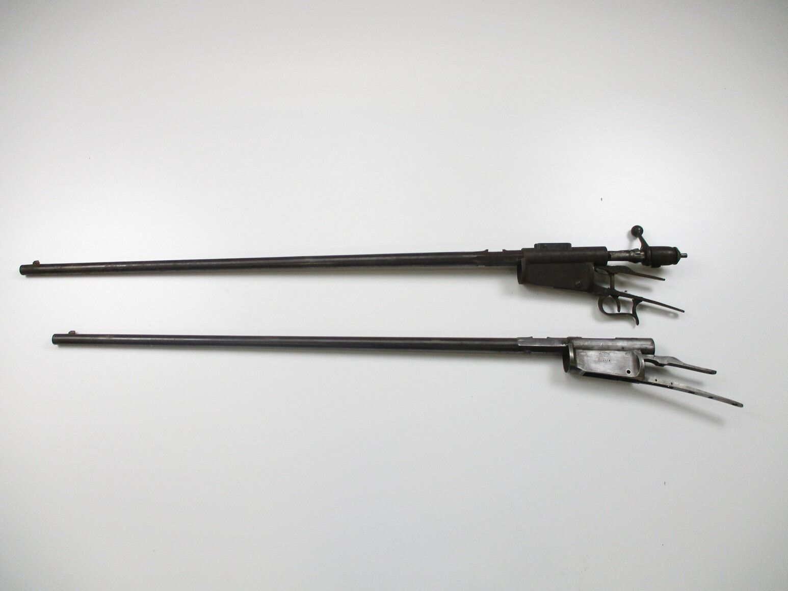 SWISS VETTERLI ACTIONS & BARRELS , LOT OF 2. LOT IS ANTIQUE. DOES NOT REQUIRE A PAL. INCLUDES (1) STRIPPED ACTION WITH BARREL (ACTION & BARREL WITH MATCHING NUMBER) # 106308, BARREL, APPROX. 33", WITH GOOD BORE, (1) RECEIVER MAY BE COMPLETE, WITH BARREL, (ACTION & BARREL WITH MATCHING NUMBER) # 105484, APPROX. 33" BARREL, WITH POOR BORE. MAY REQUIRE FITTING.