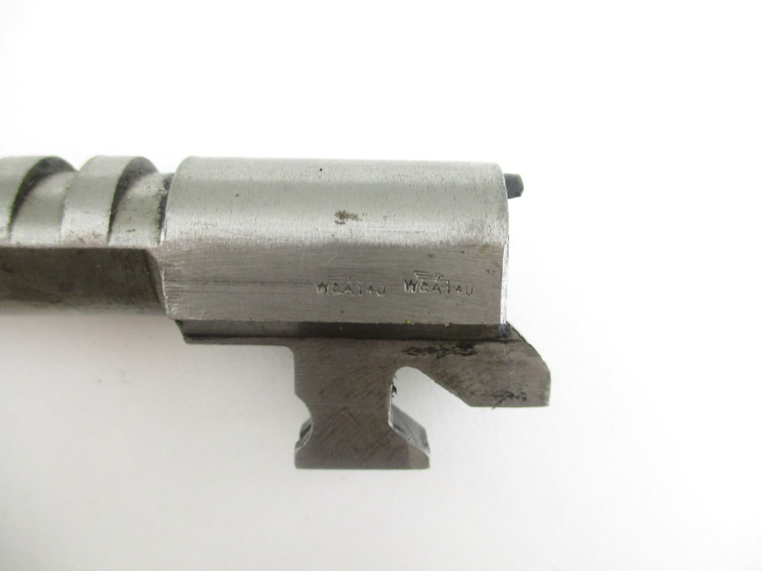 BELGIAN HI-POWER PISTOL BARREL & GRIPS , 9MM BARREL, APPROX. 5" OAL, WAA 140 MARKED, FAIR BORE, INCLUDES PLASTIC HI-POWER PISTOL GRIPS.