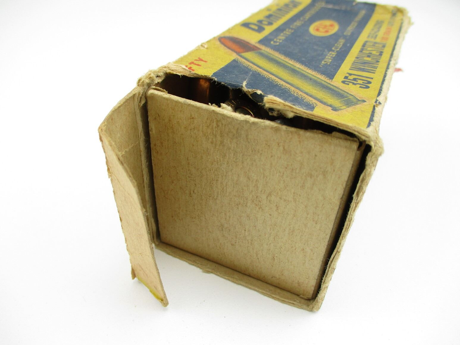 COLLECTIBLE CIL DOMINION .351 WIN AMMO, 39 RNDS, 180 GRNS (STATED ON BOX, NOT CONFIRMED), SOFT POINT, MAY INCLUDE OTHER MFG'S, IN DAMAGED COLLECTIBLE AMMO BOX, THERE ARE NEW SHIPPING RESTRICTIONS, PLEASE MAKE SURE YOU HAVE READ AND CONFIRMED WE CAN SHIP TO YOU BEFORE BIDDING ON THIS LOT. PLEASE SEE LOT 0 IN THIS SESSION. NO REFUNDS WILL BE ISSUED, OR BIDS RETRACTED