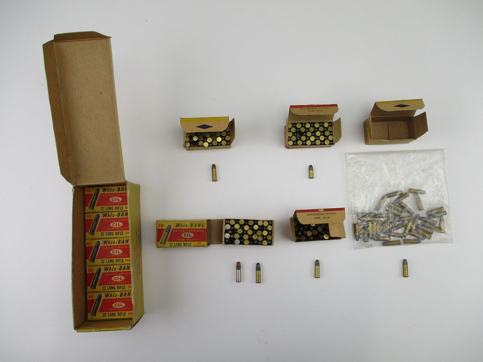 COLLECTIBLE ASSORTED .22 AMMO LOT, 469 RNDS, INCLUDES LONG & SHORT, SEEM TO ALL BE CIL, SOME ARE IN COLLECTIBLE AMMO BOXES, THERE ARE NEW SHIPPING RESTRICTIONS, PLEASE MAKE SURE YOU HAVE READ AND CONFIRMED WE CAN SHIP TO YOU BEFORE BIDDING ON THIS LOT. PLEASE SEE LOT 0 IN THIS SESSION. NO REFUNDS WILL BE ISSUED, OR BIDS RETRACTED