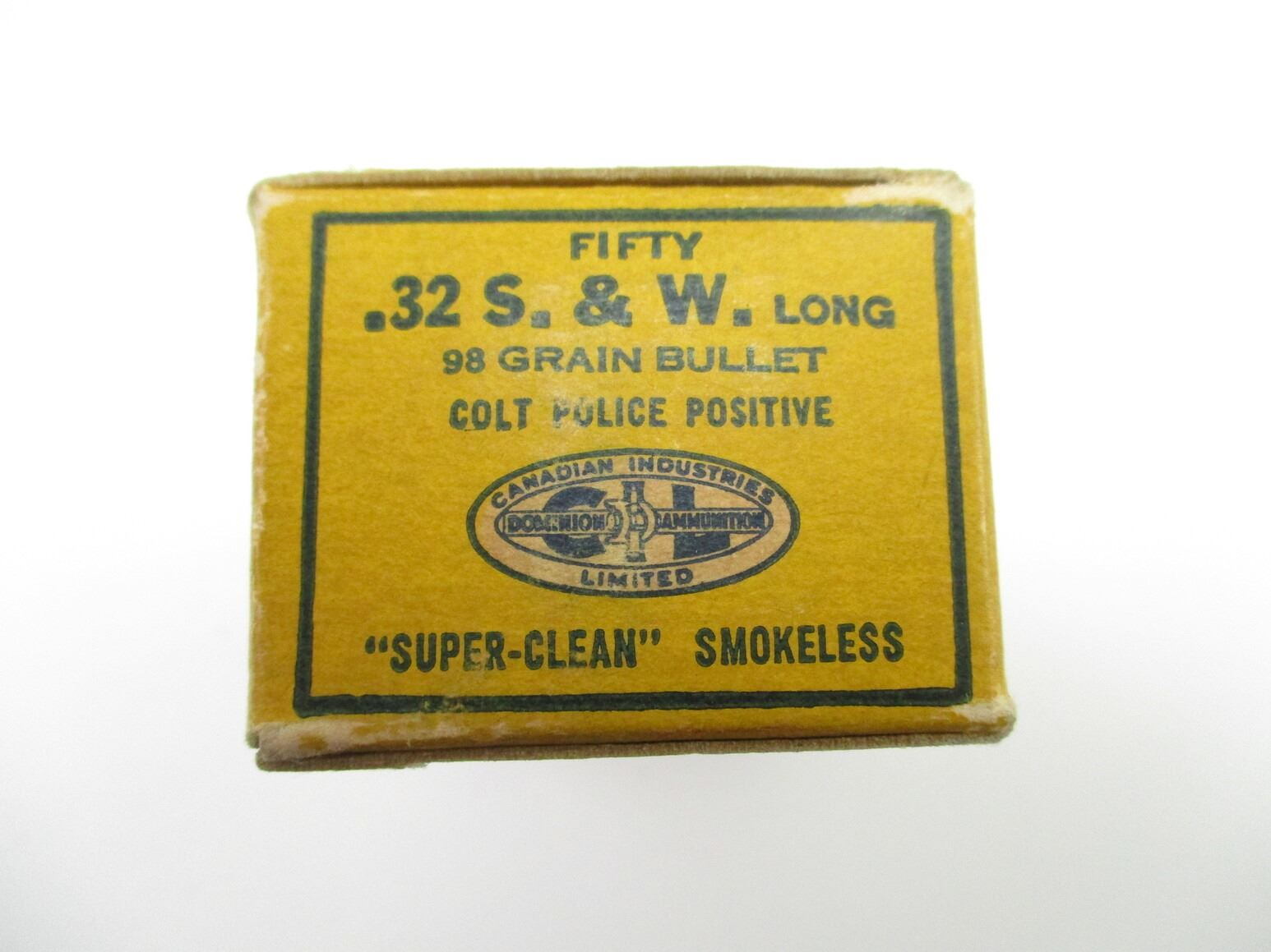 COLLECTIBLE CIL DOMINION .32 S&W LONG AMMO, 50 RNDS, 98 GRNS (STATED ON BOX, NOT CONFIRMED), IN COLLECTIBLE AMMO BOX, THERE ARE NEW SHIPPING RESTRICTIONS, PLEASE MAKE SURE YOU HAVE READ AND CONFIRMED WE CAN SHIP TO YOU BEFORE BIDDING ON THIS LOT. PLEASE SEE LOT 0 IN THIS SESSION. NO REFUNDS WILL BE ISSUED, OR BIDS RETRACTED