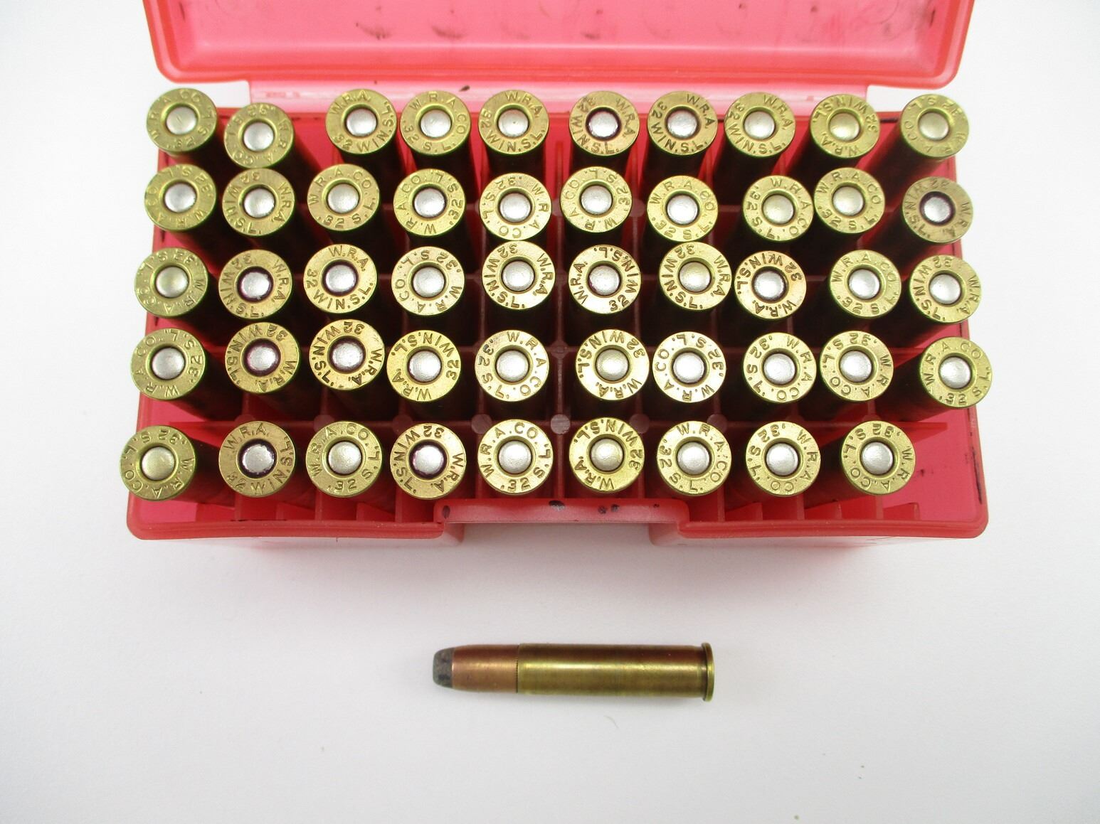 COLLECTIBLE W.R.A. .32 SELF LOADING AMMO, 50 RNDS, LOT INCLUDES (1) 50 ROUND PLASTIC AMMO CONTAINER, THERE ARE NEW SHIPPING RESTRICTIONS, PLEASE MAKE SURE YOU HAVE READ AND CONFIRMED WE CAN SHIP TO YOU BEFORE BIDDING ON THIS LOT. PLEASE SEE LOT 0 IN THIS SESSION. NO REFUNDS WILL BE ISSUED, OR BIDS RETRACTED