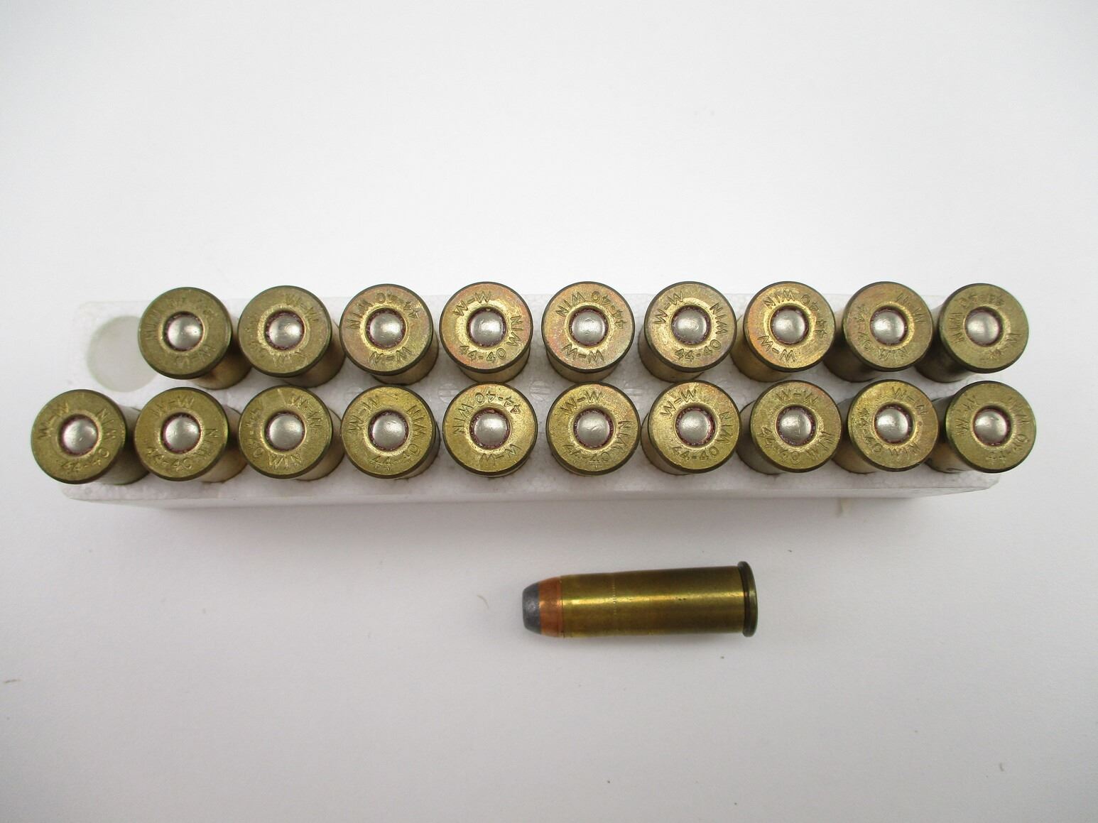 COLLECTIBLE WINCHESTER LITTLE BIG HORN .44-40 WIN AMMO, 20 RNDS, 200 GRNS (STATED ON BOX, NOT CONFIRMED), SOFT POINT, IN COLLECTIBLE AMMO BOX, THERE ARE NEW SHIPPING RESTRICTIONS, PLEASE MAKE SURE YOU HAVE READ AND CONFIRMED WE CAN SHIP TO YOU BEFORE BIDDING ON THIS LOT. PLEASE SEE LOT 0 IN THIS SESSION. NO REFUNDS WILL BE ISSUED, OR BIDS RETRACTED