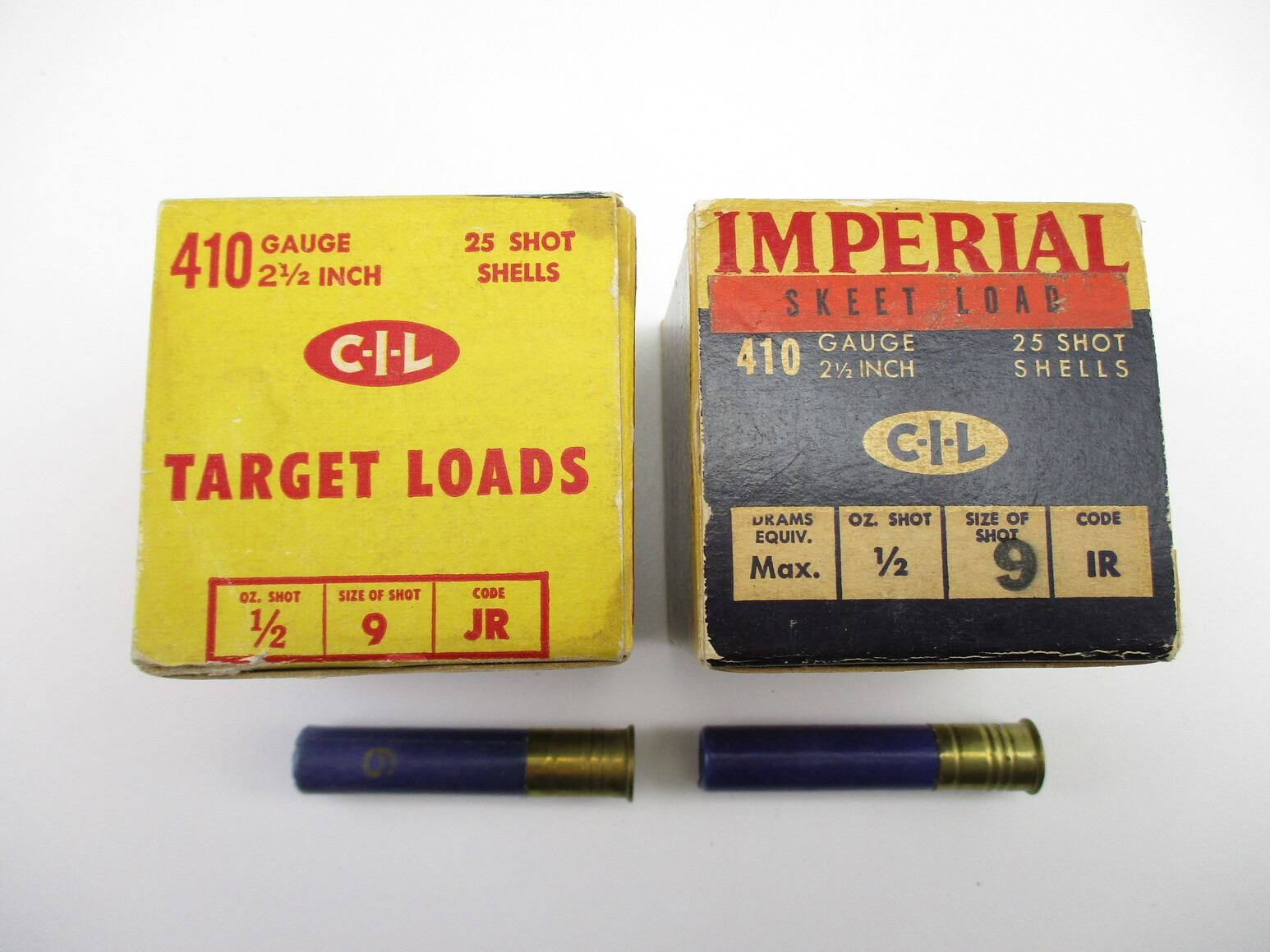 COLLECTIBLE CIL /410 GAUGE SHOTSHELLS LOT, 50 RNDS, 2 1/2", IN COLLECTIBLE AMMO BOXES, THERE ARE NEW SHIPPING RESTRICTIONS, PLEASE MAKE SURE YOU HAVE READ AND CONFIRMED WE CAN SHIP TO YOU BEFORE BIDDING ON THIS LOT. PLEASE SEE LOT 0 IN THIS SESSION. NO REFUNDS WILL BE ISSUED, OR BIDS RETRACTED