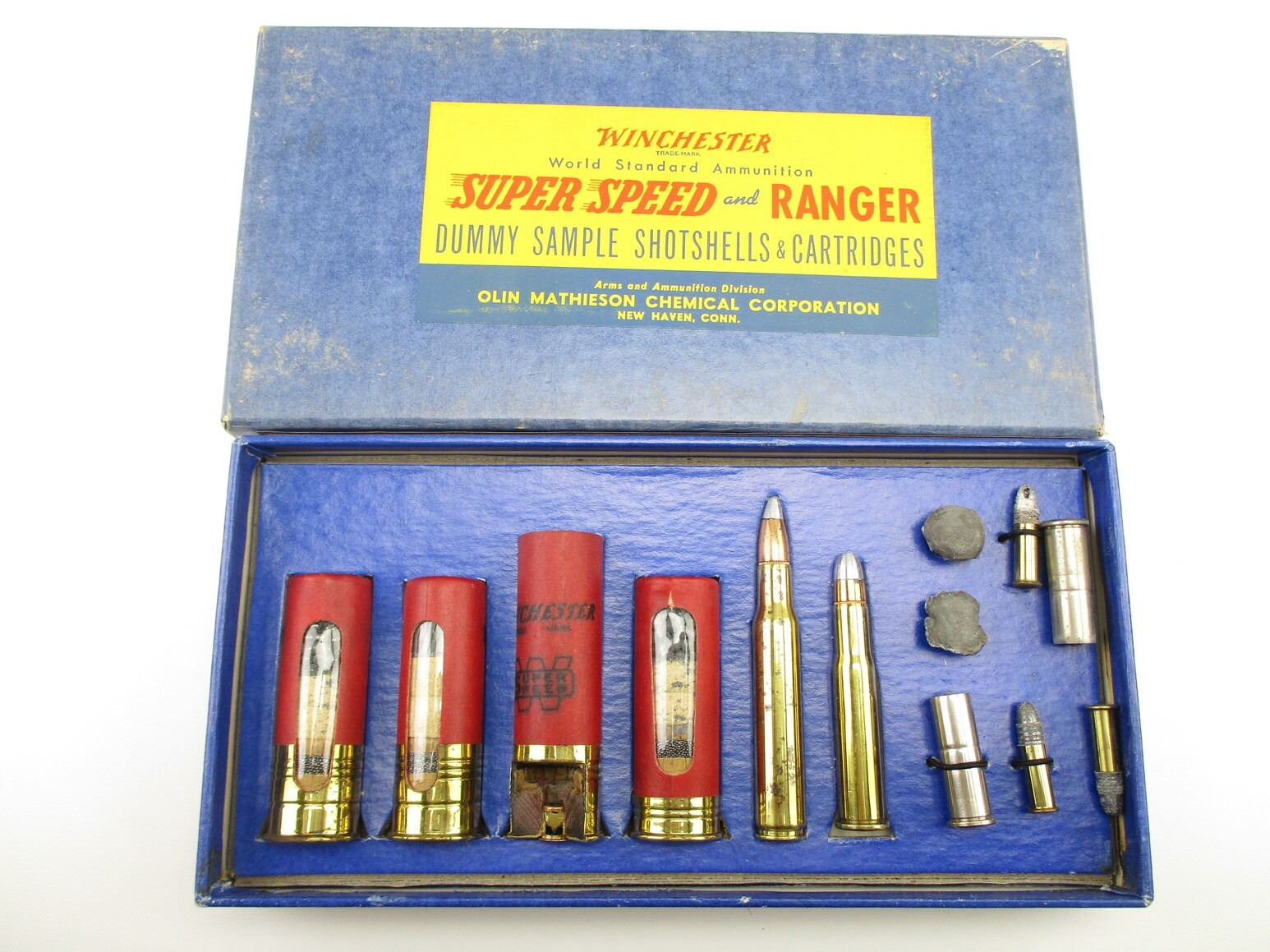 COLLECTIBLE WINCHESTER SALESMAN SAMPLE AMMO LOT, DUMMY SHOTSHELLS & CARTRIDGES, SEE PHOTOS, THERE ARE NEW SHIPPING RESTRICTIONS, PLEASE MAKE SURE YOU HAVE READ AND CONFIRMED WE CAN SHIP TO YOU BEFORE BIDDING ON THIS LOT. PLEASE SEE LOT 0 IN THIS SESSION. NO REFUNDS WILL BE ISSUED, OR BIDS RETRACTED