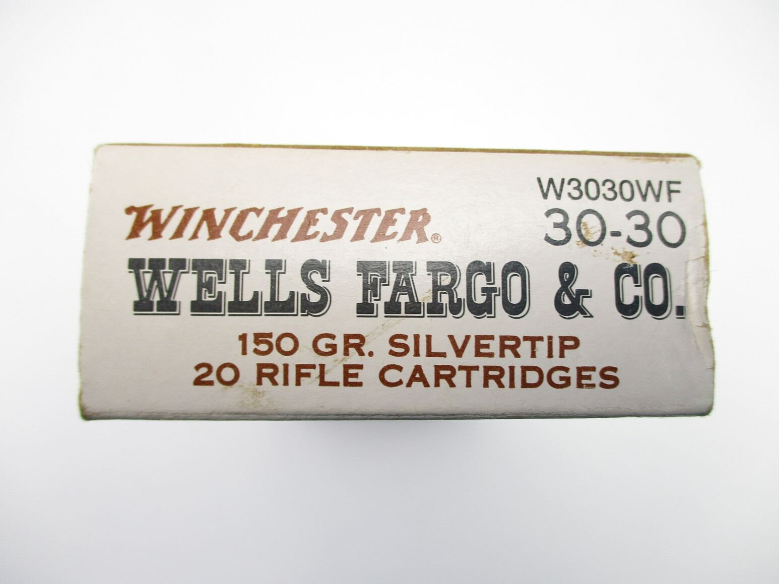COLLECTIBLE WINCHESTER WELLS FARGO & CO. .30-30 WIN AMMO, 20 RNDS, 150 GRNS (STATED ON BOX, NOT CONFIRMED), SILVERTIP, THERE ARE NEW SHIPPING RESTRICTIONS, PLEASE MAKE SURE YOU HAVE READ AND CONFIRMED WE CAN SHIP TO YOU BEFORE BIDDING ON THIS LOT. PLEASE SEE LOT 0 IN THIS SESSION. NO REFUNDS WILL BE ISSUED, OR BIDS RETRACTED