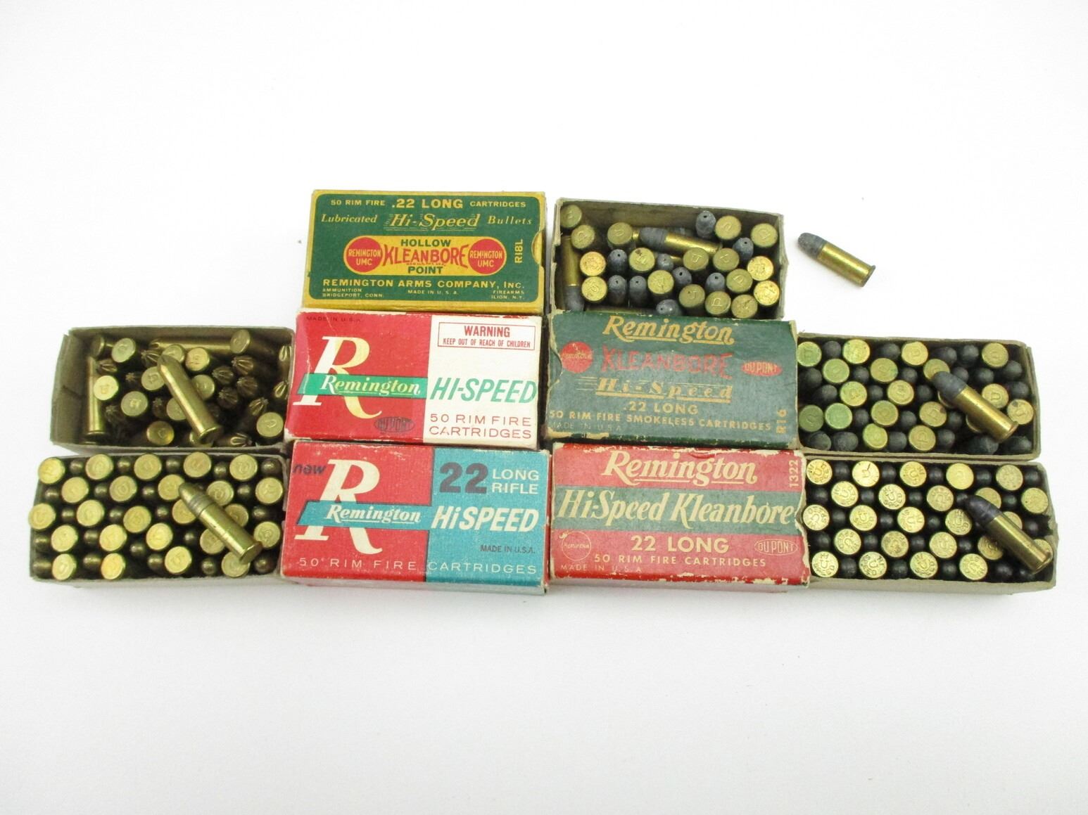 COLLECTIBLE REMINGTON .22 LONG RIFLE AMMO, APPROX 200 RNDS, IN COLLECTIBLE AMMO BOXES, THERE ARE NEW SHIPPING RESTRICTIONS, PLEASE MAKE SURE YOU HAVE READ AND CONFIRMED WE CAN SHIP TO YOU BEFORE BIDDING ON THIS LOT. PLEASE SEE LOT 0 IN THIS SESSION. NO REFUNDS WILL BE ISSUED, OR BIDS RETRACTED