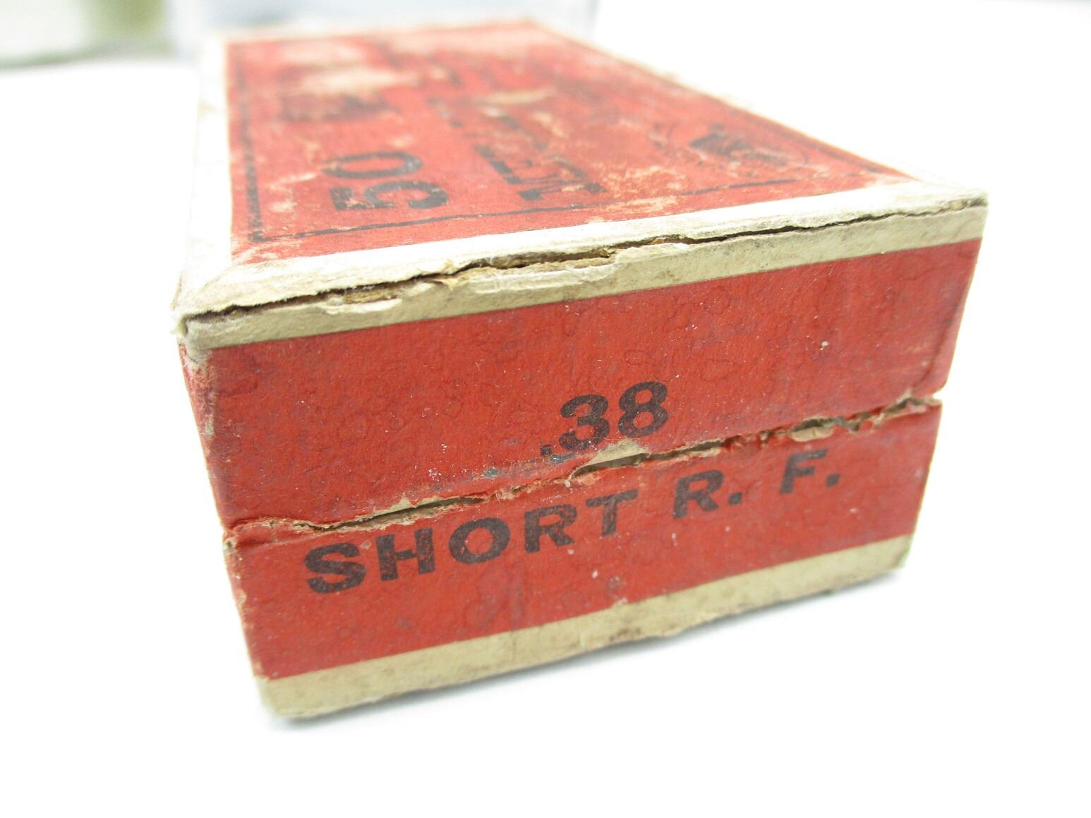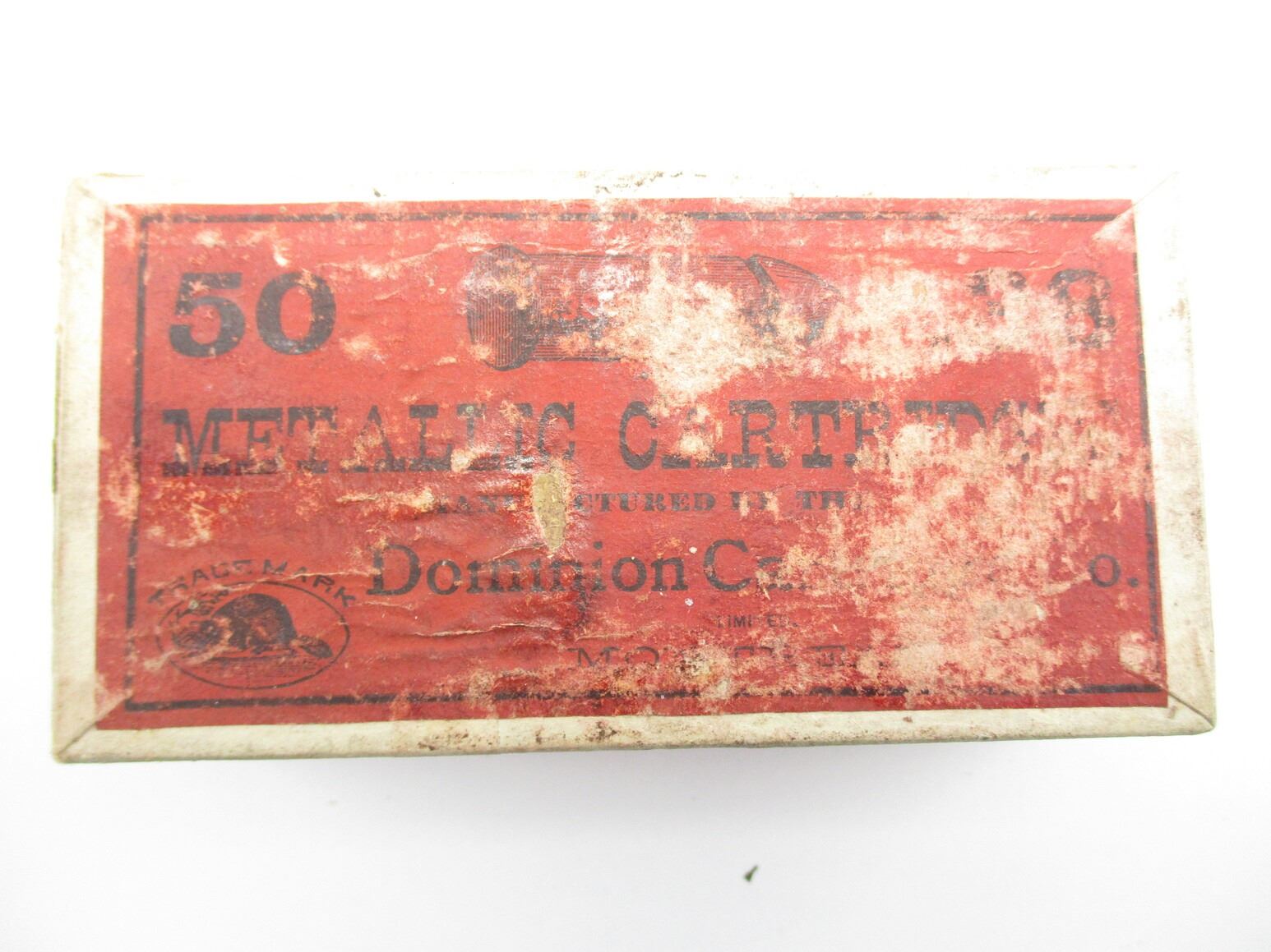 COLLECTIBLE DOMINION .38 SHORT AMMO, 50 RNDS, IN WORN COLLECTIBLE AMMO BOX, THERE ARE NEW SHIPPING RESTRICTIONS, PLEASE MAKE SURE YOU HAVE READ AND CONFIRMED WE CAN SHIP TO YOU BEFORE BIDDING ON THIS LOT. PLEASE SEE LOT 0 IN THIS SESSION. NO REFUNDS WILL BE ISSUED, OR BIDS RETRACTED
