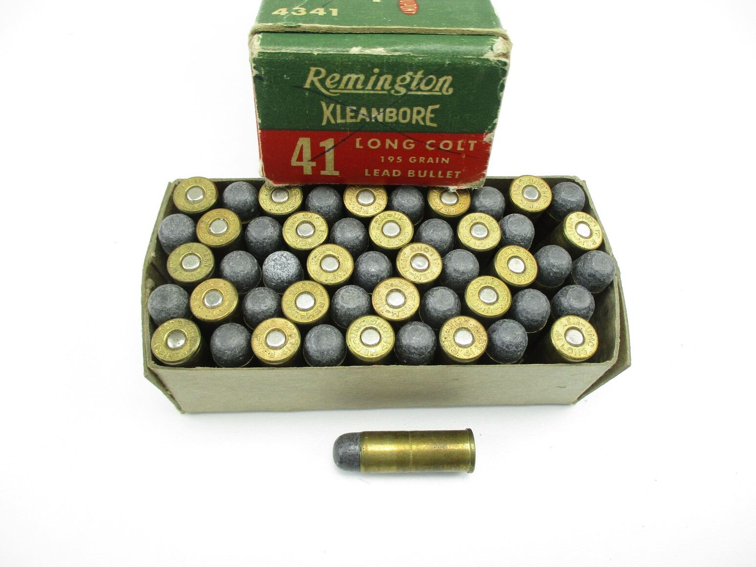 COLLECTIBLE REMINGTON .41 LONG COLT, 50 RNDS, 195 GRNS (STATED ON BOX, NOT CONFIRMED), LEAD BULLET, IN COLLECTIBLE AMMO BOX, THERE ARE NEW SHIPPING RESTRICTIONS, PLEASE MAKE SURE YOU HAVE READ AND CONFIRMED WE CAN SHIP TO YOU BEFORE BIDDING ON THIS LOT. PLEASE SEE LOT 0 IN THIS SESSION. NO REFUNDS WILL BE ISSUED, OR BIDS RETRACTED