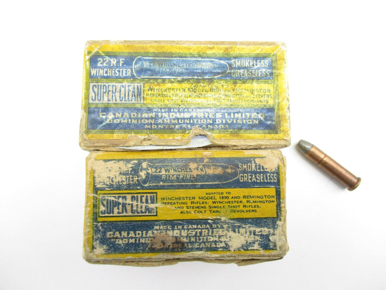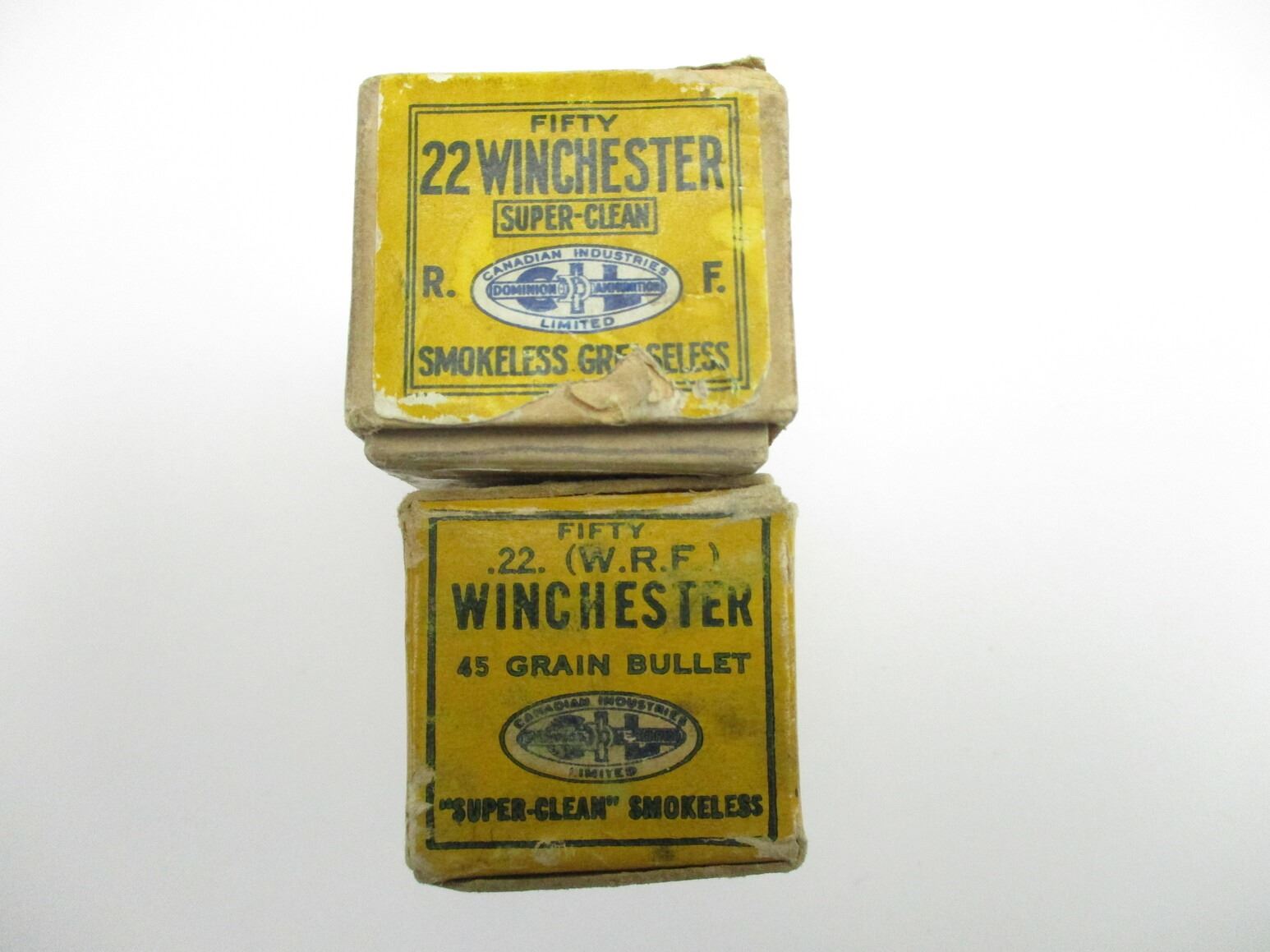 COLLECTIBLE CIL .22 W.R.F. AMMO, 64 RNDS, IN WORN COLLECTIBLE AMMO BOXES, THERE ARE NEW SHIPPING RESTRICTIONS, PLEASE MAKE SURE YOU HAVE READ AND CONFIRMED WE CAN SHIP TO YOU BEFORE BIDDING ON THIS LOT. PLEASE SEE LOT 0 IN THIS SESSION. NO REFUNDS WILL BE ISSUED, OR BIDS RETRACTED