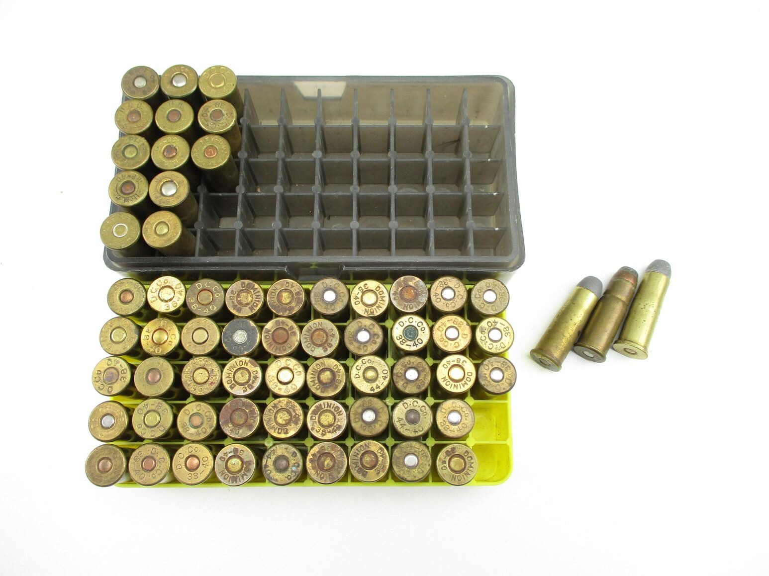 COLLECTIBLE ASSORTED .38-40 WIN AMMO, 64 RNDS, MFG'S INCLUDE: REMINGTON, DOMINION, ETC. , THERE ARE NEW SHIPPING RESTRICTIONS, PLEASE MAKE SURE YOU HAVE READ AND CONFIRMED WE CAN SHIP TO YOU BEFORE BIDDING ON THIS LOT. PLEASE SEE LOT 0 IN THIS SESSION. NO REFUNDS WILL BE ISSUED, OR BIDS RETRACTED