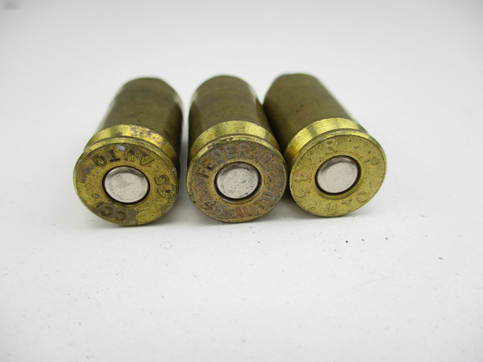 RELOADED .45 AUTO AMMO, APPROX 8.4 LBS, MAY INCLUDE OTHER CALIBERS, THERE ARE NEW SHIPPING RESTRICTIONS, PLEASE MAKE SURE YOU HAVE READ AND CONFIRMED WE CAN SHIP TO YOU BEFORE BIDDING ON THIS LOT. PLEASE SEE LOT 0 IN THIS SESSION. NO REFUNDS WILL BE ISSUED, OR BIDS RETRACTED, THIS IS NON FACTORY RELOADS. IT IS BEING SOLD AS COMPONENTS ONLY. USE OTHER THAN DESCRIBED IS COMPLETELY AT YOUR RISK.