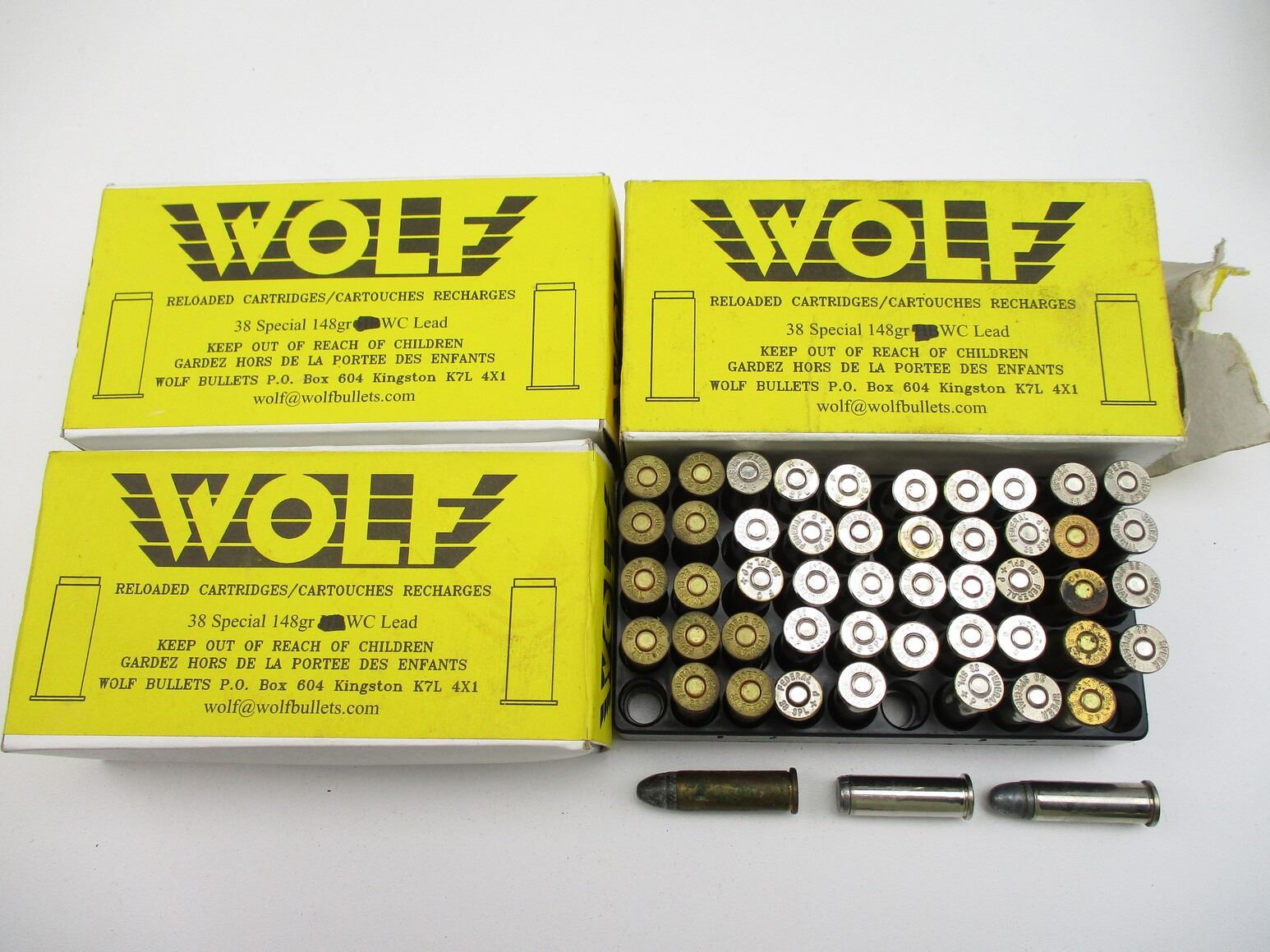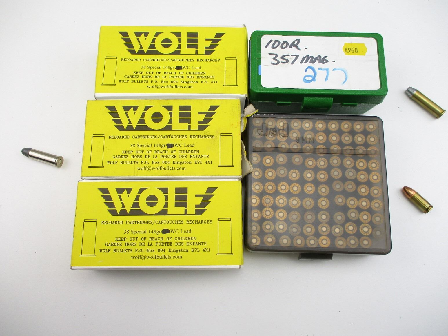 RELOADED ASSORTED AMMO, 285 RNDS, VARIOUS CALIBERS INCLUDING: .38 SPL, .357 MAG, 9MM, ETC., LOT ALSO INCLUDES (1) 50 ROUND PLASTIC AMMO CONTAINER, & (1) 100 ROUND PLASTIC AMMO CONTAINER, THERE ARE NEW SHIPPING RESTRICTIONS, PLEASE MAKE SURE YOU HAVE READ AND CONFIRMED WE CAN SHIP TO YOU BEFORE BIDDING ON THIS LOT. PLEASE SEE LOT 0 IN THIS SESSION. NO REFUNDS WILL BE ISSUED, OR BIDS RETRACTED, THIS IS NON FACTORY RELOADS. IT IS BEING SOLD AS COMPONENTS ONLY. USE OTHER THAN DESCRIBED IS COMPLETELY AT YOUR RISK.