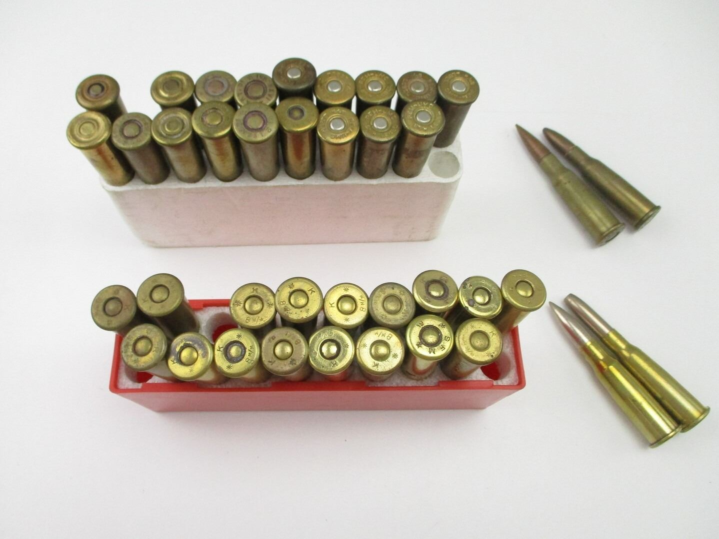 RELOADED / FACTORY 8MM LEBEL AMMO, 40 RNDS, (9) CARTRIDGES WITH SILVER PRIMERS ARE RELOADS, THE REST (11) ARE FACTORY RNDS, THERE ARE NEW SHIPPING RESTRICTIONS, PLEASE MAKE SURE YOU HAVE READ AND CONFIRMED WE CAN SHIP TO YOU BEFORE BIDDING ON THIS LOT. PLEASE SEE LOT 0 IN THIS SESSION. NO REFUNDS WILL BE ISSUED, OR BIDS RETRACTED, THIS IS NON FACTORY RELOADS. IT IS BEING SOLD AS COMPONENTS ONLY. USE OTHER THAN DESCRIBED IS COMPLETELY AT YOUR RISK.
