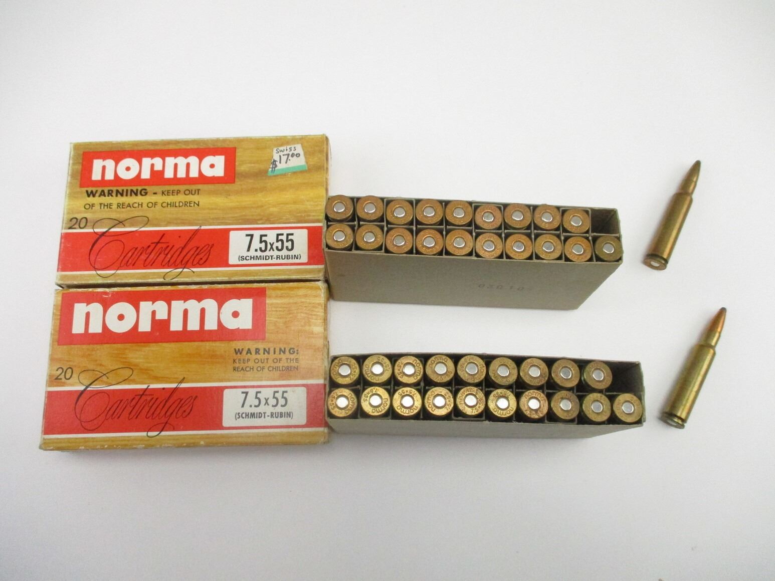 RELOADED 7.5X55 AMMO, 40 RNDS, THERE ARE NEW SHIPPING RESTRICTIONS, PLEASE MAKE SURE YOU HAVE READ AND CONFIRMED WE CAN SHIP TO YOU BEFORE BIDDING ON THIS LOT. PLEASE SEE LOT 0 IN THIS SESSION. NO REFUNDS WILL BE ISSUED, OR BIDS RETRACTED, THIS IS NON FACTORY RELOADS. IT IS BEING SOLD AS COMPONENTS ONLY. USE OTHER THAN DESCRIBED IS COMPLETELY AT YOUR RISK.