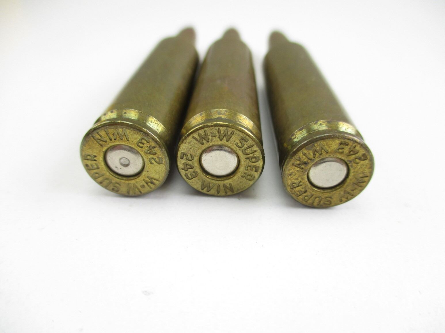 RELOADED .270 WIN AMMO, 100 RNDS, 3 BRASS, LOT INCLUDES (3) RELOADED .243 WIN, THERE ARE NEW SHIPPING RESTRICTIONS, PLEASE MAKE SURE YOU HAVE READ AND CONFIRMED WE CAN SHIP TO YOU BEFORE BIDDING ON THIS LOT. PLEASE SEE LOT 0 IN THIS SESSION. NO REFUNDS WILL BE ISSUED, OR BIDS RETRACTED, THIS IS NON FACTORY RELOADS. IT IS BEING SOLD AS COMPONENTS ONLY. USE OTHER THAN DESCRIBED IS COMPLETELY AT YOUR RISK.
