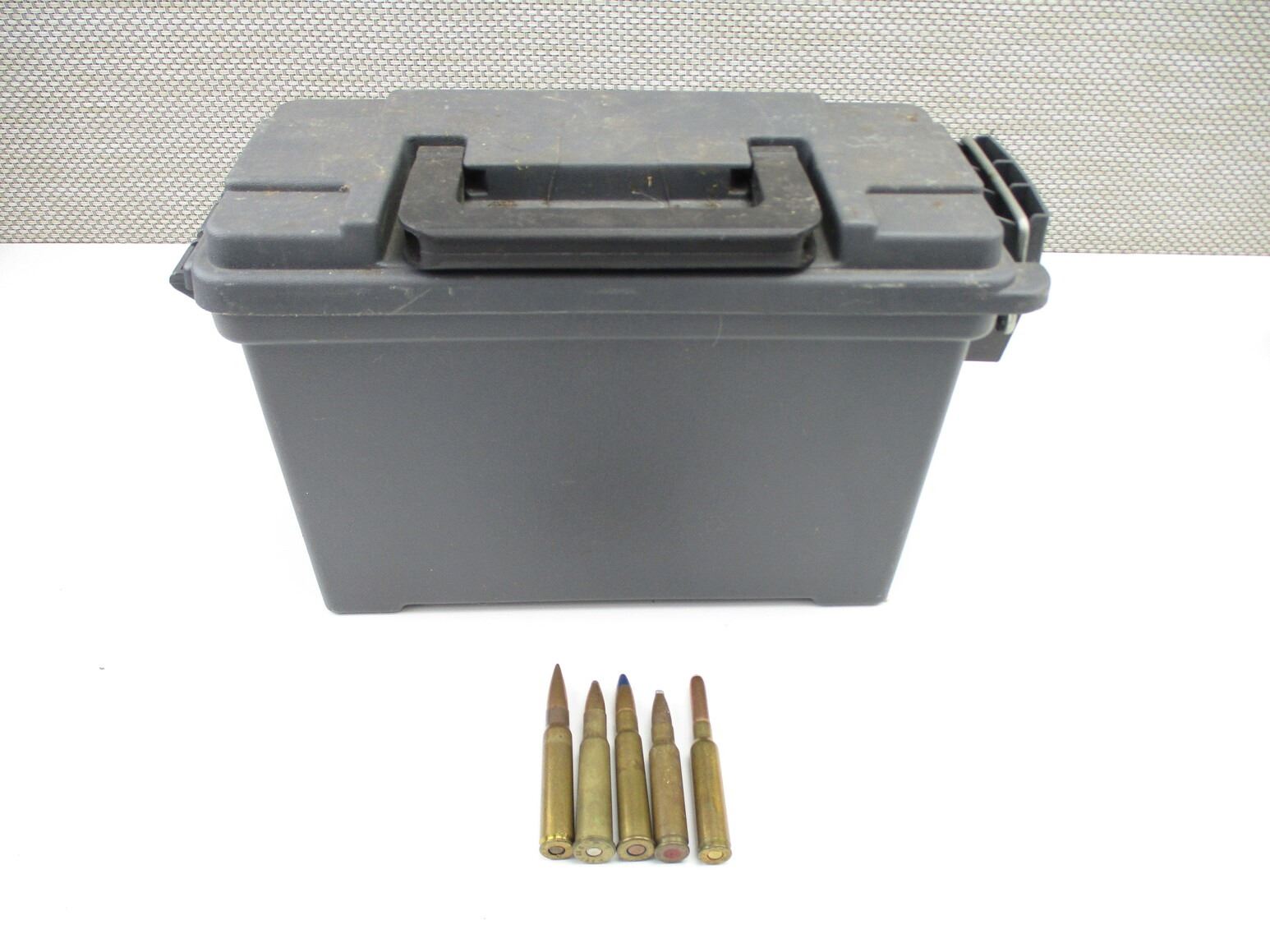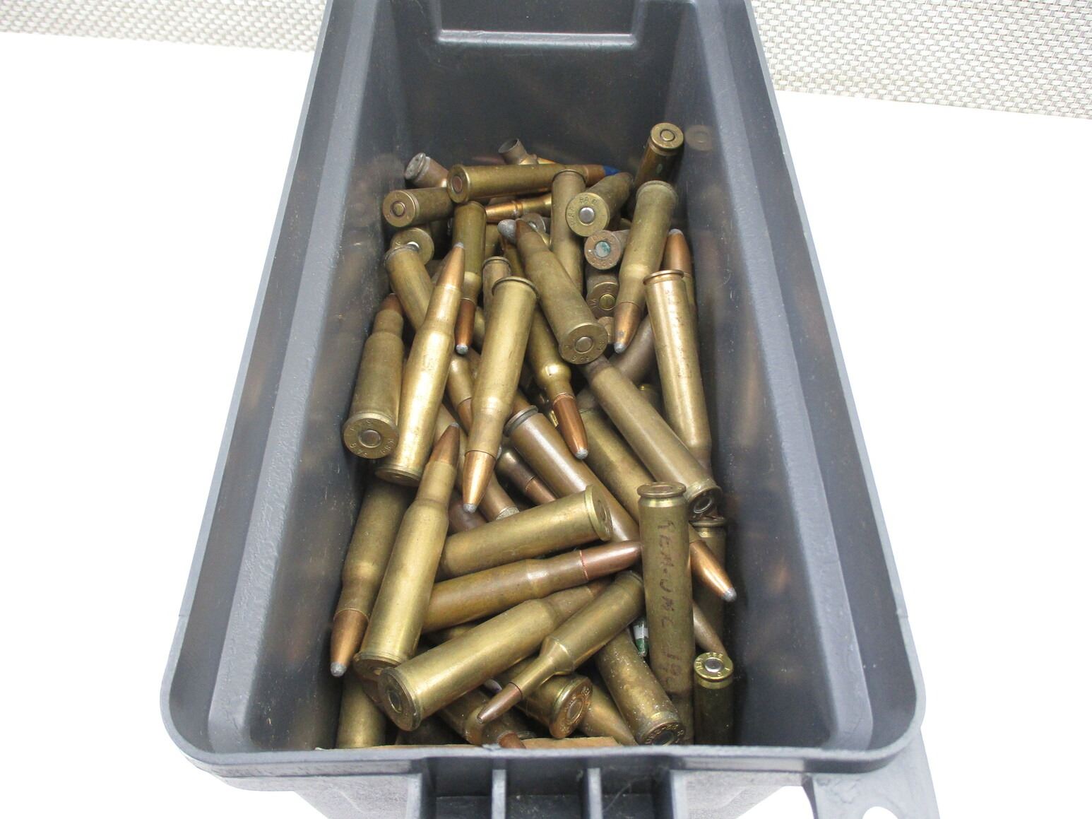 RELOADED / FACTORY AMMO LOT, APPROX 10.7 LBS, LOT INCLUDES VARIOUS CALIBERS, LOT IS MOSTLY MILITARY RNDS, LOT MAY INCLUDE: BRASS, DAMAGED RNDS, FACTORY AMMO, ETC., LOT ALSO INCLUDES (1) PLASTIC AMMO CONTAINER, APPROX 11" X 5" X 7.5", THERE ARE NEW SHIPPING RESTRICTIONS, PLEASE MAKE SURE YOU HAVE READ AND CONFIRMED WE CAN SHIP TO YOU BEFORE BIDDING ON THIS LOT. PLEASE SEE LOT 0 IN THIS SESSION. NO REFUNDS WILL BE ISSUED, OR BIDS RETRACTED, THIS IS NON FACTORY RELOADS. IT IS BEING SOLD AS COMPONENTS ONLY. USE OTHER THAN DESCRIBED IS COMPLETELY AT YOUR RISK.