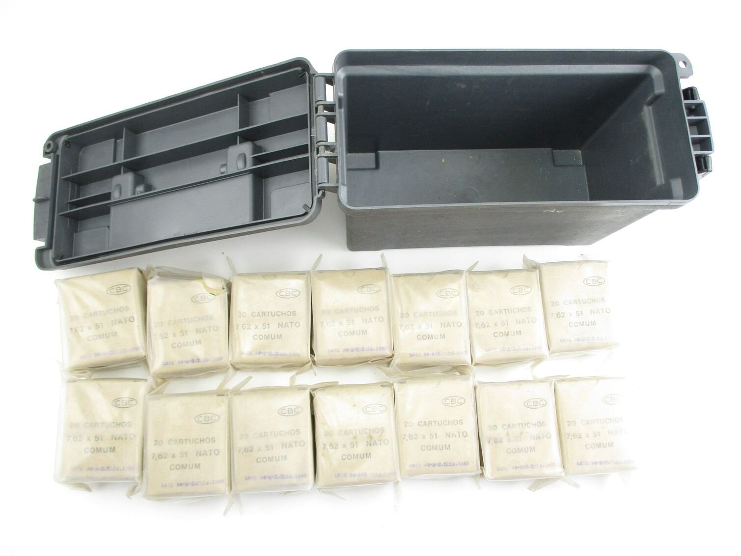 RELOADED CBC 7.62 NATO AMMO, 280 RNDS, LOT INCLUDES (1) PLASTIC AMMO CONTAINER, APPROX 10.5" X 5.5" X 7", THERE ARE NEW SHIPPING RESTRICTIONS, PLEASE MAKE SURE YOU HAVE READ AND CONFIRMED WE CAN SHIP TO YOU BEFORE BIDDING ON THIS LOT. PLEASE SEE LOT 0 IN THIS SESSION. NO REFUNDS WILL BE ISSUED, OR BIDS RETRACTED, THIS IS NON FACTORY RELOADS. IT IS BEING SOLD AS COMPONENTS ONLY. USE OTHER THAN DESCRIBED IS COMPLETELY AT YOUR RISK.