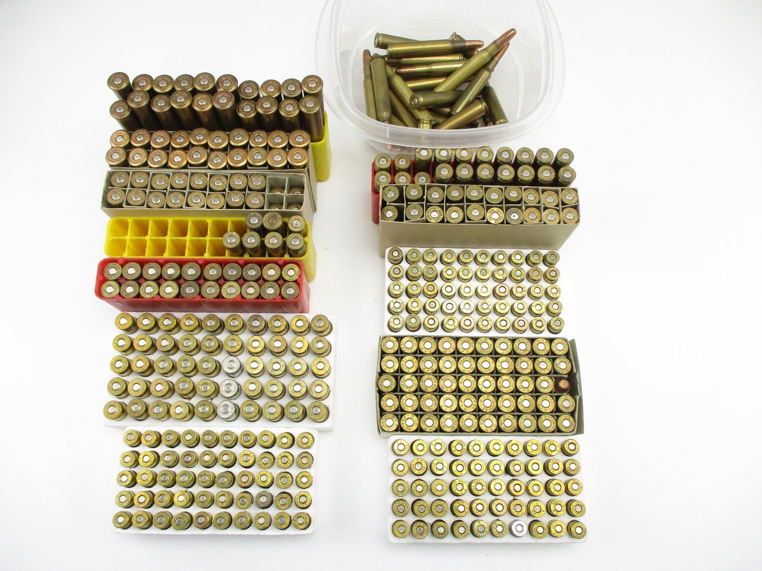 RELOADED ASSORTED AMMO LOT, 375 RNDS, 4 NON-PRIMED, 20 PRIMED, VARIOUS CALIBERS INCLUDING: .30-06 SPRG, 6.5 JAPANESE, 9MM LUGER, .45 AUTO, ETC., THERE ARE NEW SHIPPING RESTRICTIONS, PLEASE MAKE SURE YOU HAVE READ AND CONFIRMED WE CAN SHIP TO YOU BEFORE BIDDING ON THIS LOT. PLEASE SEE LOT 0 IN THIS SESSION. NO REFUNDS WILL BE ISSUED, OR BIDS RETRACTED, THIS IS NON FACTORY RELOADS. IT IS BEING SOLD AS COMPONENTS ONLY. USE OTHER THAN DESCRIBED IS COMPLETELY AT YOUR RISK.