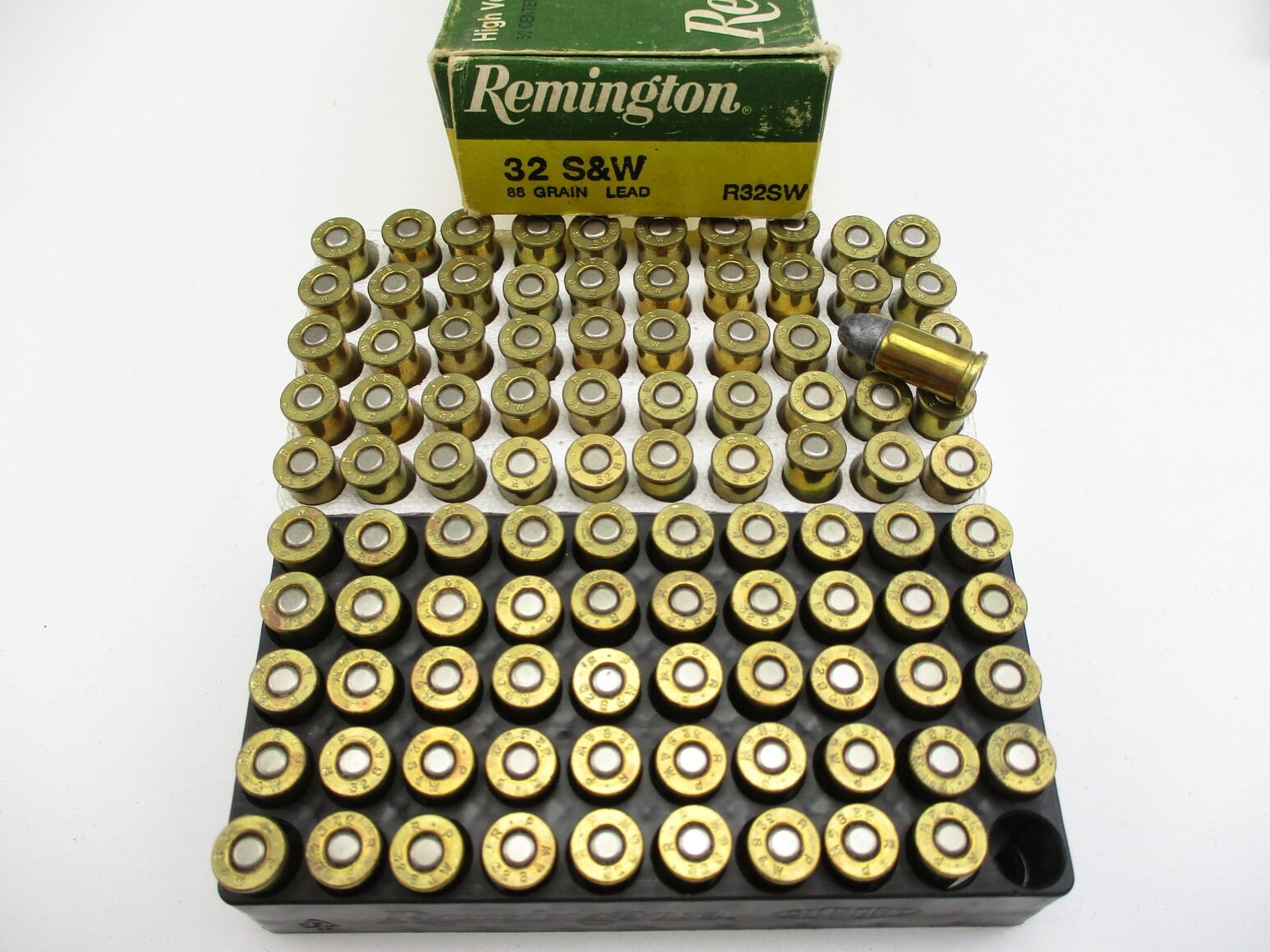 REMINGTON .32 S&W AMMO, 100 RNDS, 88 GRNS (STATED ON BOX, NOT CONFIRMED), LEAD, THERE ARE NEW SHIPPING RESTRICTIONS, PLEASE MAKE SURE YOU HAVE READ AND CONFIRMED WE CAN SHIP TO YOU BEFORE BIDDING ON THIS LOT. PLEASE SEE LOT 0 IN THIS SESSION. NO REFUNDS WILL BE ISSUED, OR BIDS RETRACTED