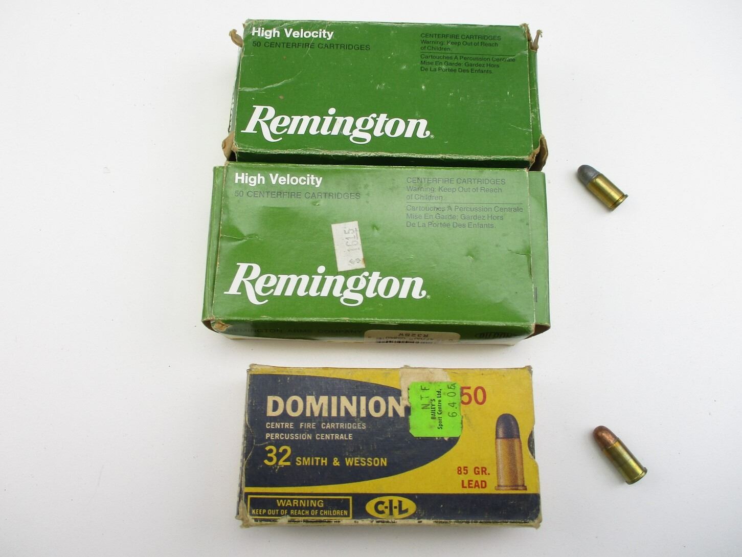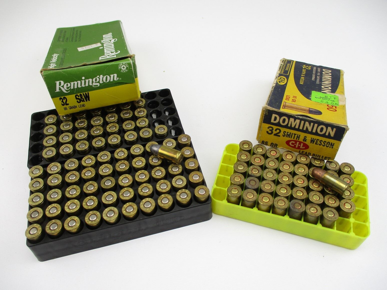 ASSORTED .32 S&W AMMO, 126 RNDS, INCLUDES: (86) REMINGTON, 88 GRNS (STATED ON BOX, NOT CONFIRMED), & (40) DOMINION, 85 GRNS (STATED ON BOX, NOT CONFIRMED), THERE ARE NEW SHIPPING RESTRICTIONS, PLEASE MAKE SURE YOU HAVE READ AND CONFIRMED WE CAN SHIP TO YOU BEFORE BIDDING ON THIS LOT. PLEASE SEE LOT 0 IN THIS SESSION. NO REFUNDS WILL BE ISSUED, OR BIDS RETRACTED