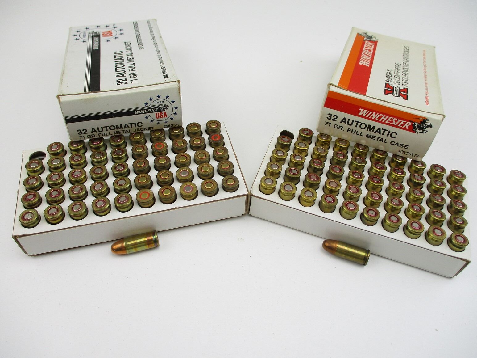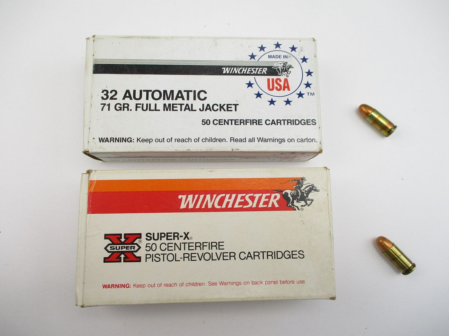 WINCHESTER .32 AUTO AMMO, 100 RNDS, 71 GRNS (STATED ON BOX, NOT CONFIRMED), FMC/FMJ, THERE ARE NEW SHIPPING RESTRICTIONS, PLEASE MAKE SURE YOU HAVE READ AND CONFIRMED WE CAN SHIP TO YOU BEFORE BIDDING ON THIS LOT. PLEASE SEE LOT 0 IN THIS SESSION. NO REFUNDS WILL BE ISSUED, OR BIDS RETRACTED