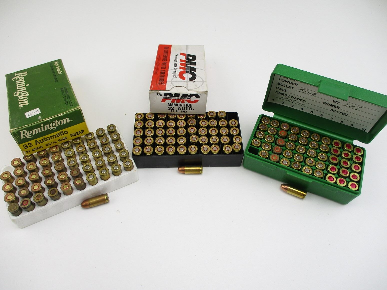 ASSORTED .32 AUTO AMMO, 215 RNDS, 71 GRNS (STATED ON BOX, NOT CONFIRMED), VARIOUS MFG'S INCLUDING: PMC, REMINGTON, WINCHESTER, PPU, ETC., LOT INCLUDES (1) 50 ROUND PLASTIC AMMO CONTAINER, THERE ARE NEW SHIPPING RESTRICTIONS, PLEASE MAKE SURE YOU HAVE READ AND CONFIRMED WE CAN SHIP TO YOU BEFORE BIDDING ON THIS LOT. PLEASE SEE LOT 0 IN THIS SESSION. NO REFUNDS WILL BE ISSUED, OR BIDS RETRACTED