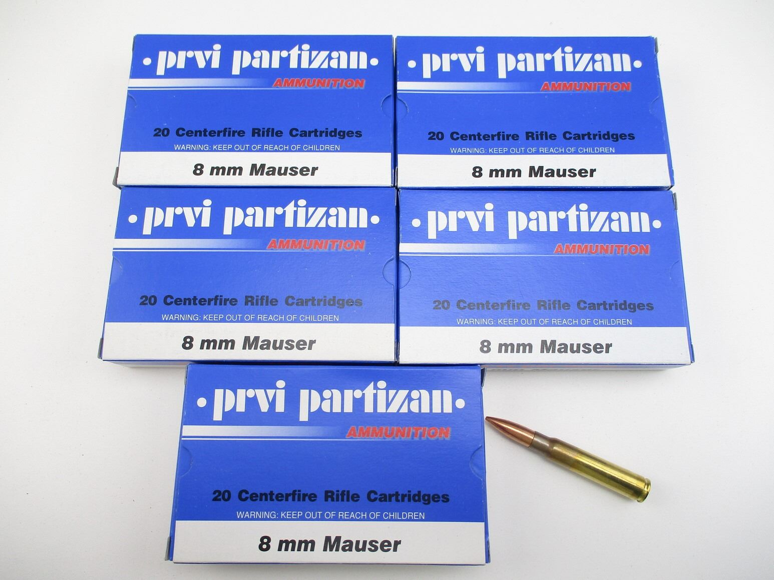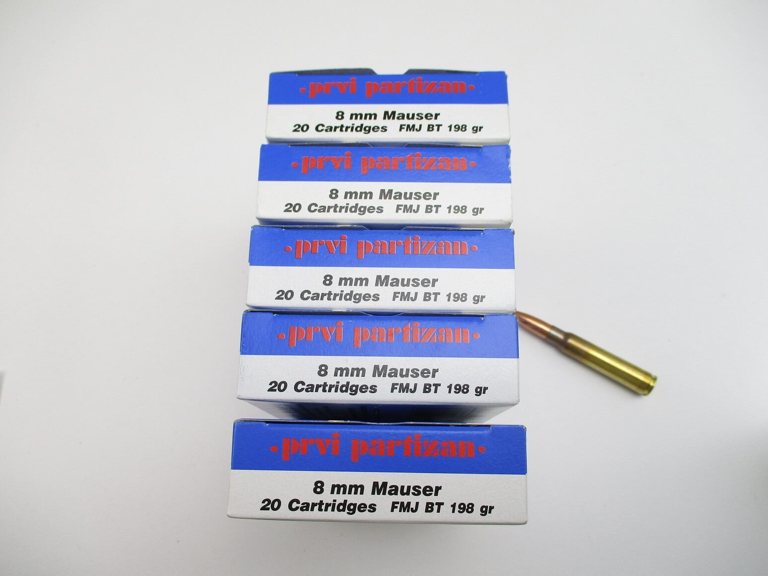 PPU 8MM MAUSER AMMO, 100 RNDS, 198 GRNS (STATED ON BOX, NOT CONFIRMED) FMJ BT, THERE ARE NEW SHIPPING RESTRICTIONS, PLEASE MAKE SURE YOU HAVE READ AND CONFIRMED WE CAN SHIP TO YOU BEFORE BIDDING ON THIS LOT. PLEASE SEE LOT 0 IN THIS SESSION. NO REFUNDS WILL BE ISSUED, OR BIDS RETRACTED