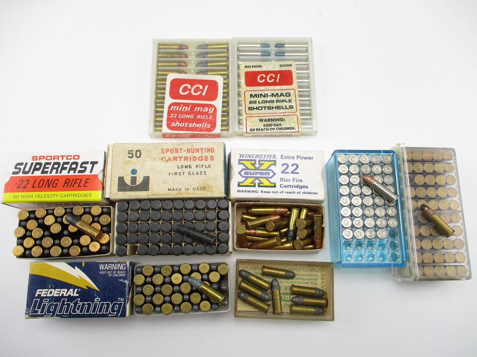 ASSORTED .22 LONG RIFLE AMMO LOT, 791 RNDS, VARIOUS MFG'S, THERE ARE NEW SHIPPING RESTRICTIONS, PLEASE MAKE SURE YOU HAVE READ AND CONFIRMED WE CAN SHIP TO YOU BEFORE BIDDING ON THIS LOT. PLEASE SEE LOT 0 IN THIS SESSION. NO REFUNDS WILL BE ISSUED, OR BIDS RETRACTED