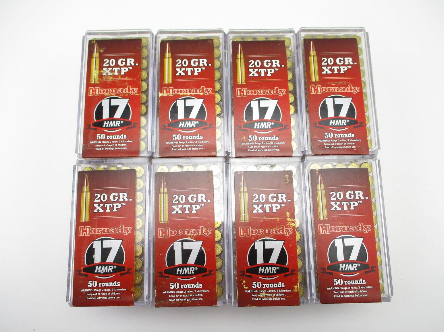 HORNADY .17 HMR AMMO, 400 RNDS, 20 GRNS (STATED ON BOX, NOT CONFIRMED, XTP, THERE ARE NEW SHIPPING RESTRICTIONS, PLEASE MAKE SURE YOU HAVE READ AND CONFIRMED WE CAN SHIP TO YOU BEFORE BIDDING ON THIS LOT. PLEASE SEE LOT 0 IN THIS SESSION. NO REFUNDS WILL BE ISSUED, OR BIDS RETRACTED