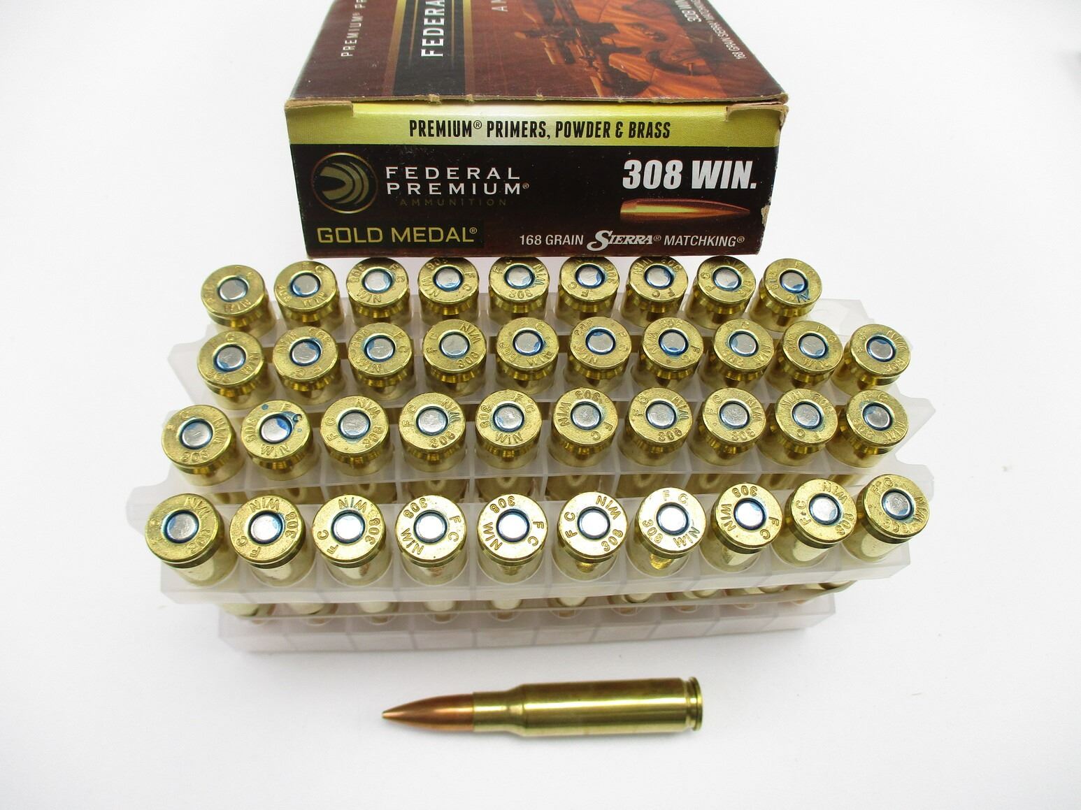 FEDERAL PREMIUM .308 WIN AMMO, 40 RNDS, 168 GRNS (STATED ON BOX, NOT CONFIRMED), SIERRA MATCHINGS, THERE ARE NEW SHIPPING RESTRICTIONS, PLEASE MAKE SURE YOU HAVE READ AND CONFIRMED WE CAN SHIP TO YOU BEFORE BIDDING ON THIS LOT. PLEASE SEE LOT 0 IN THIS SESSION. NO REFUNDS WILL BE ISSUED, OR BIDS RETRACTED