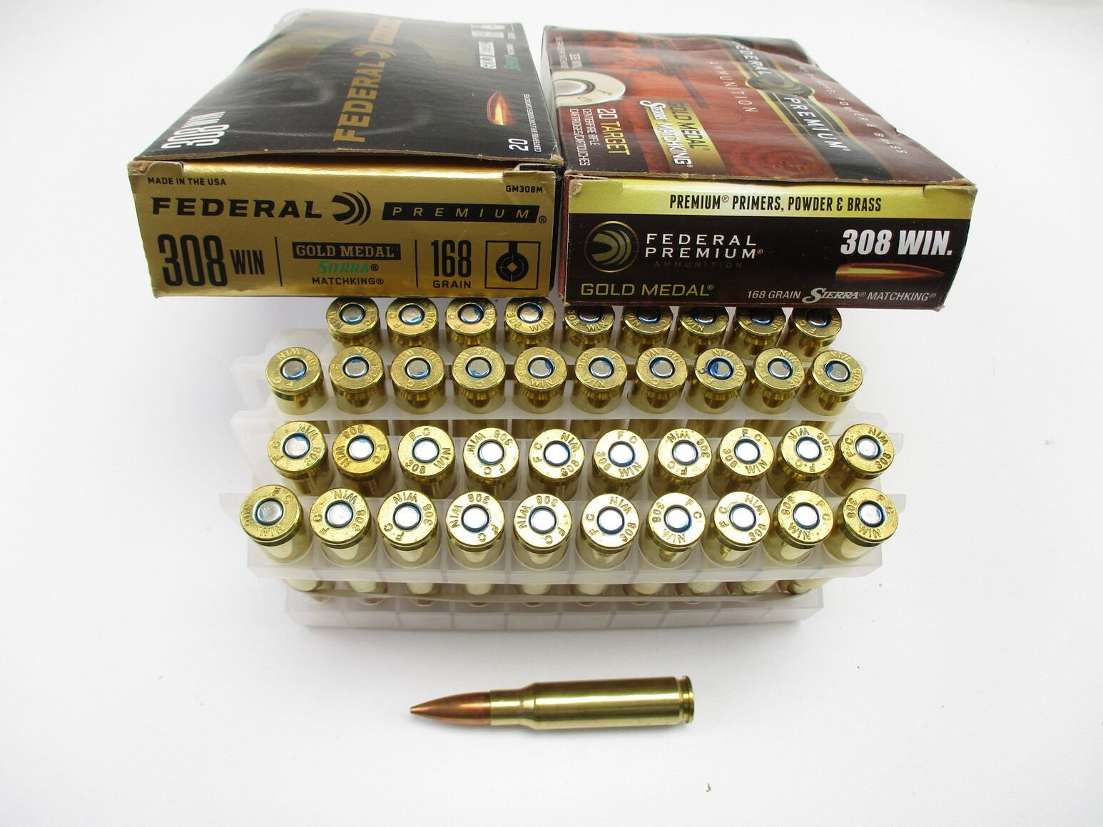 FEDERAL PREMIUM .308 WIN AMMO, 40 RNDS, 168 GRNS (STATED ON BOX, NOT CONFIRMED), SIERRA MATCHINGS, THERE ARE NEW SHIPPING RESTRICTIONS, PLEASE MAKE SURE YOU HAVE READ AND CONFIRMED WE CAN SHIP TO YOU BEFORE BIDDING ON THIS LOT. PLEASE SEE LOT 0 IN THIS SESSION. NO REFUNDS WILL BE ISSUED, OR BIDS RETRACTED