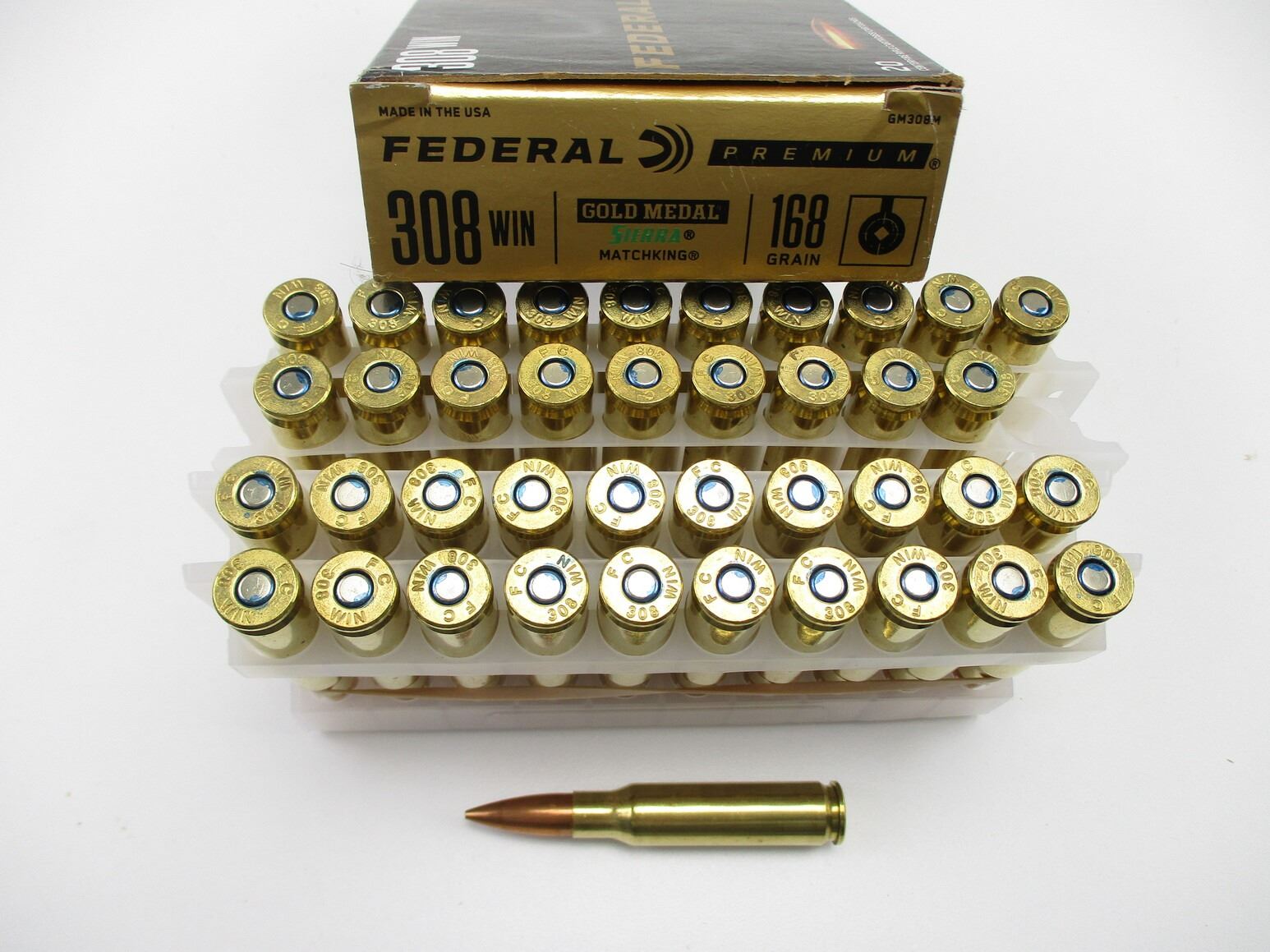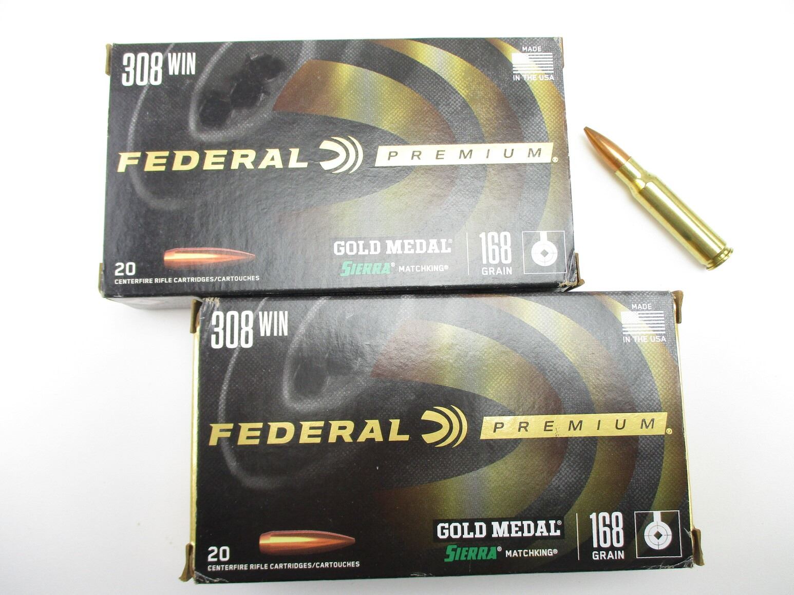 FEDERAL PREMIUM .308 WIN AMMO, 40 RNDS, 168 GRNS (STATED ON BOX, NOT CONFIRMED), SIERRA MATCHINGS, THERE ARE NEW SHIPPING RESTRICTIONS, PLEASE MAKE SURE YOU HAVE READ AND CONFIRMED WE CAN SHIP TO YOU BEFORE BIDDING ON THIS LOT. PLEASE SEE LOT 0 IN THIS SESSION. NO REFUNDS WILL BE ISSUED, OR BIDS RETRACTED
