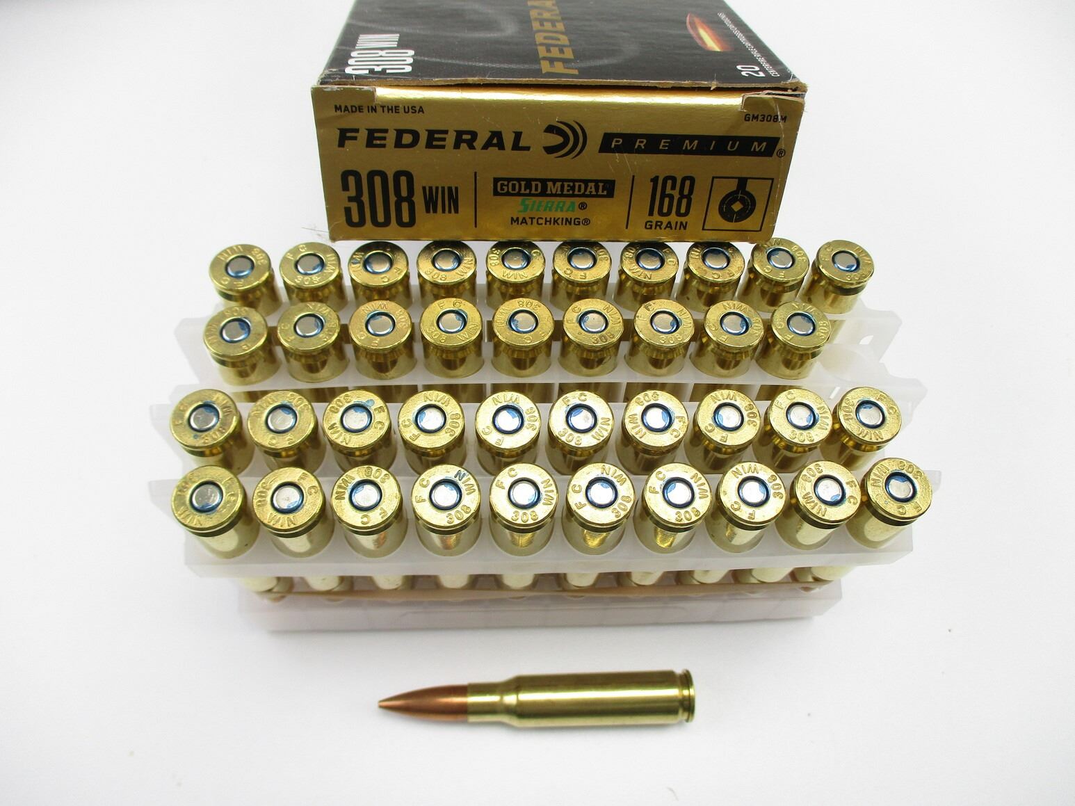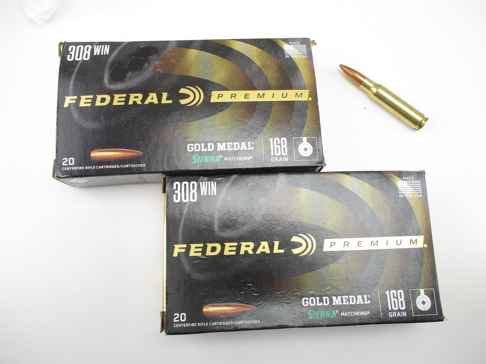 FEDERAL PREMIUM .308 WIN AMMO, 40 RNDS, 168 GRNS (STATED ON BOX, NOT CONFIRMED), SIERRA MATCHINGS, THERE ARE NEW SHIPPING RESTRICTIONS, PLEASE MAKE SURE YOU HAVE READ AND CONFIRMED WE CAN SHIP TO YOU BEFORE BIDDING ON THIS LOT. PLEASE SEE LOT 0 IN THIS SESSION. NO REFUNDS WILL BE ISSUED, OR BIDS RETRACTED