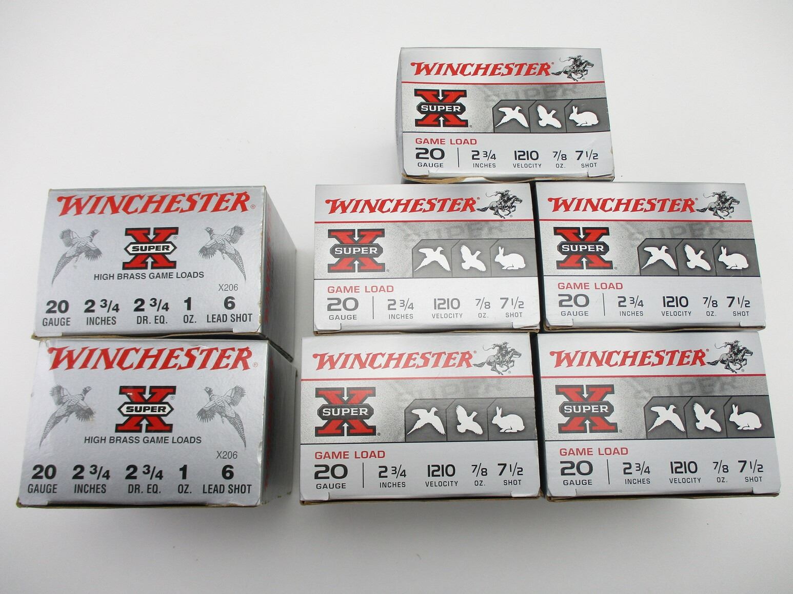 WINCHESTER SUPER-X 20 GAUGE SHOTSHELLS LOT, 170 RNDS, 2 3/4", #6 SHOT & #7 1/2 SHOT, THERE ARE NEW SHIPPING RESTRICTIONS, PLEASE MAKE SURE YOU HAVE READ AND CONFIRMED WE CAN SHIP TO YOU BEFORE BIDDING ON THIS LOT. PLEASE SEE LOT 0 IN THIS SESSION. NO REFUNDS WILL BE ISSUED, OR BIDS RETRACTED
