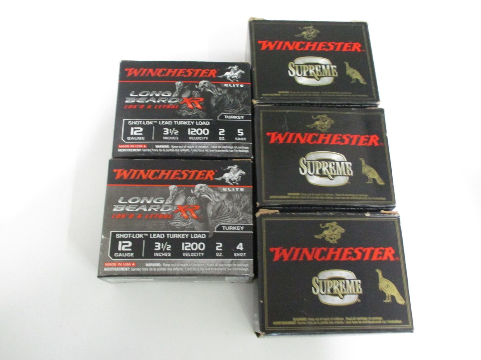 WINCHESTER 12 GAUGE TURKEY LOAD SHOTSHELLS LOT, 49 RNDS, 3 1/2", #4 & #5 SHOT, THERE ARE NEW SHIPPING RESTRICTIONS, PLEASE MAKE SURE YOU HAVE READ AND CONFIRMED WE CAN SHIP TO YOU BEFORE BIDDING ON THIS LOT. PLEASE SEE LOT 0 IN THIS SESSION. NO REFUNDS WILL BE ISSUED, OR BIDS RETRACTED