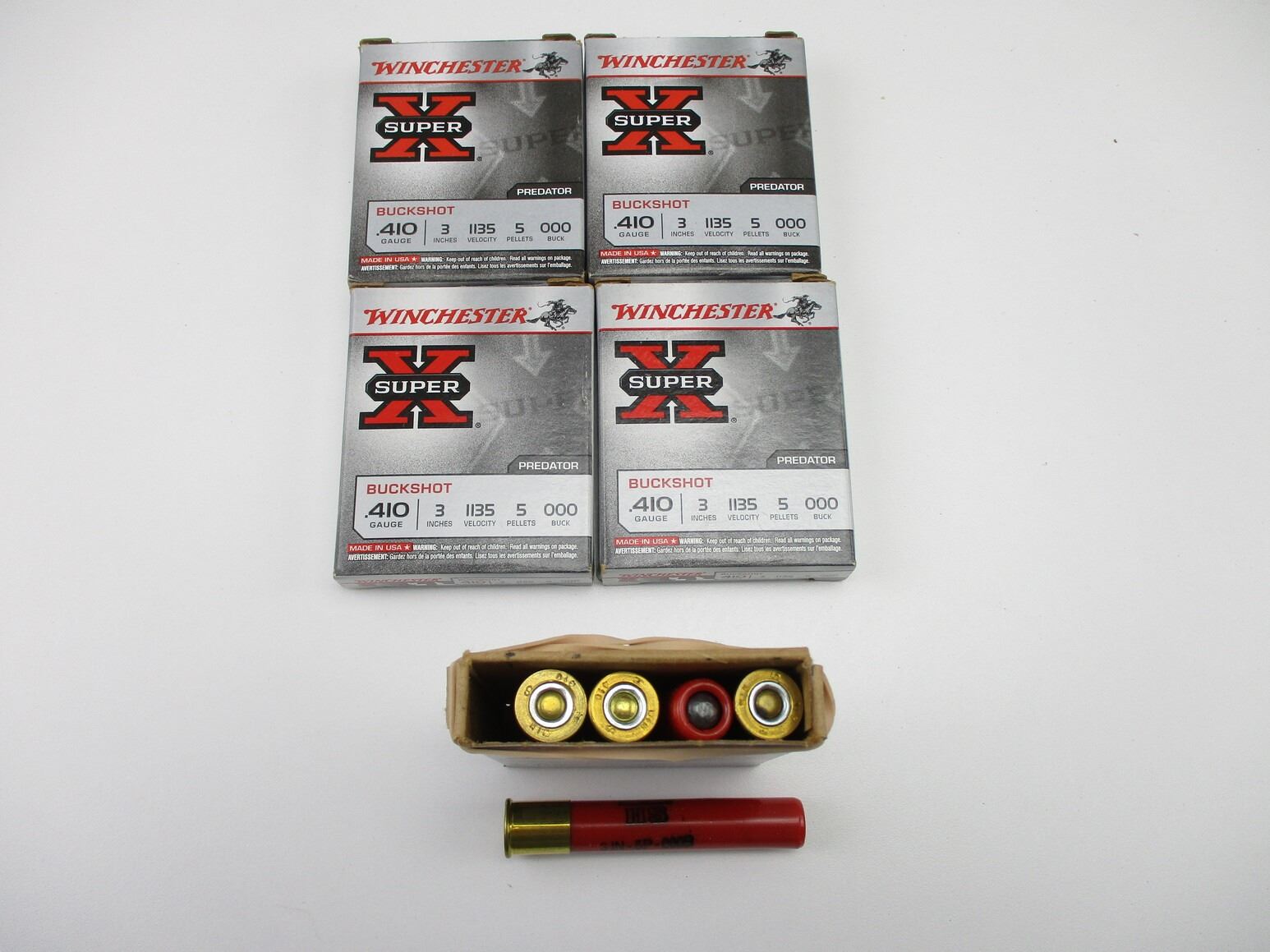 ASSORTED .410 SHOTSHELLS LOT, 55 RNDS, INCLUDES: (30) REMINGTON, 2 1/2", 4 PELLETS, & (25) WINCHESTER, 3", 5 PELLETS, THERE ARE NEW SHIPPING RESTRICTIONS, PLEASE MAKE SURE YOU HAVE READ AND CONFIRMED WE CAN SHIP TO YOU BEFORE BIDDING ON THIS LOT. PLEASE SEE LOT 0 IN THIS SESSION. NO REFUNDS WILL BE ISSUED, OR BIDS RETRACTED