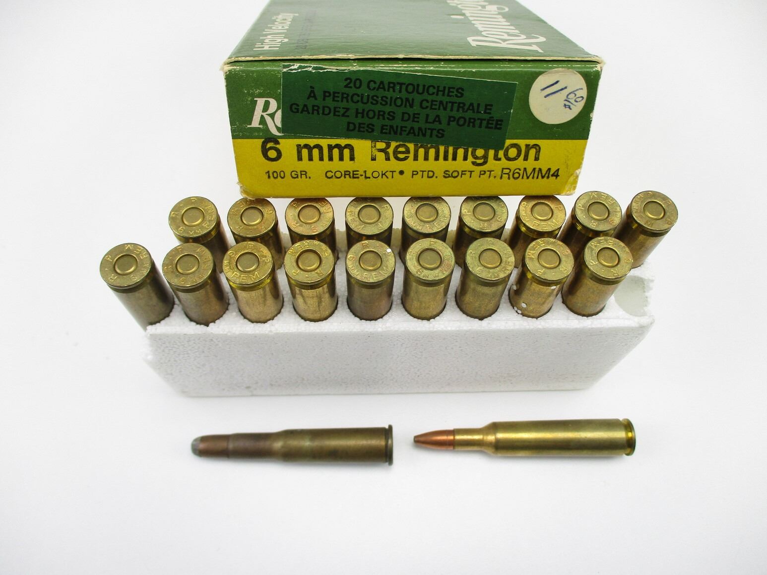 REMINGTON 6MM REM AMMO, 19 RNDS, 100 GRNS (STATED ON BOX, NOT CONFIRMED), CORE-LOKT POINTED SOFT POINT, LOT INCLUDES (1) DOMINION .303 SAVAGE, THERE ARE NEW SHIPPING RESTRICTIONS, PLEASE MAKE SURE YOU HAVE READ AND CONFIRMED WE CAN SHIP TO YOU BEFORE BIDDING ON THIS LOT. PLEASE SEE LOT 0 IN THIS SESSION. NO REFUNDS WILL BE ISSUED, OR BIDS RETRACTED