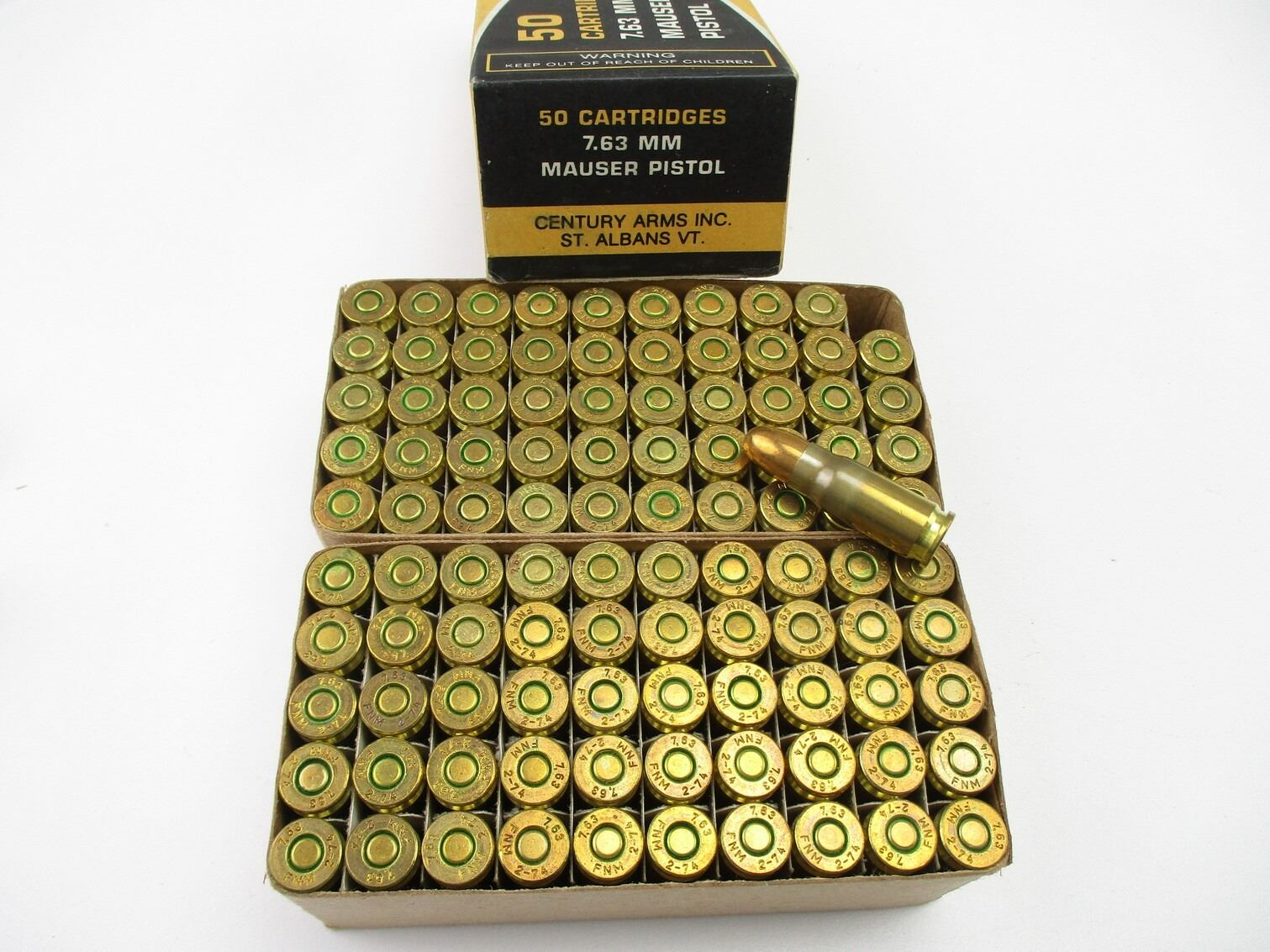 CENTURY ARMS INC. 7.63MM MAUSER AMMO, 100 RNDS, THERE ARE NEW SHIPPING RESTRICTIONS, PLEASE MAKE SURE YOU HAVE READ AND CONFIRMED WE CAN SHIP TO YOU BEFORE BIDDING ON THIS LOT. PLEASE SEE LOT 0 IN THIS SESSION. NO REFUNDS WILL BE ISSUED, OR BIDS RETRACTED