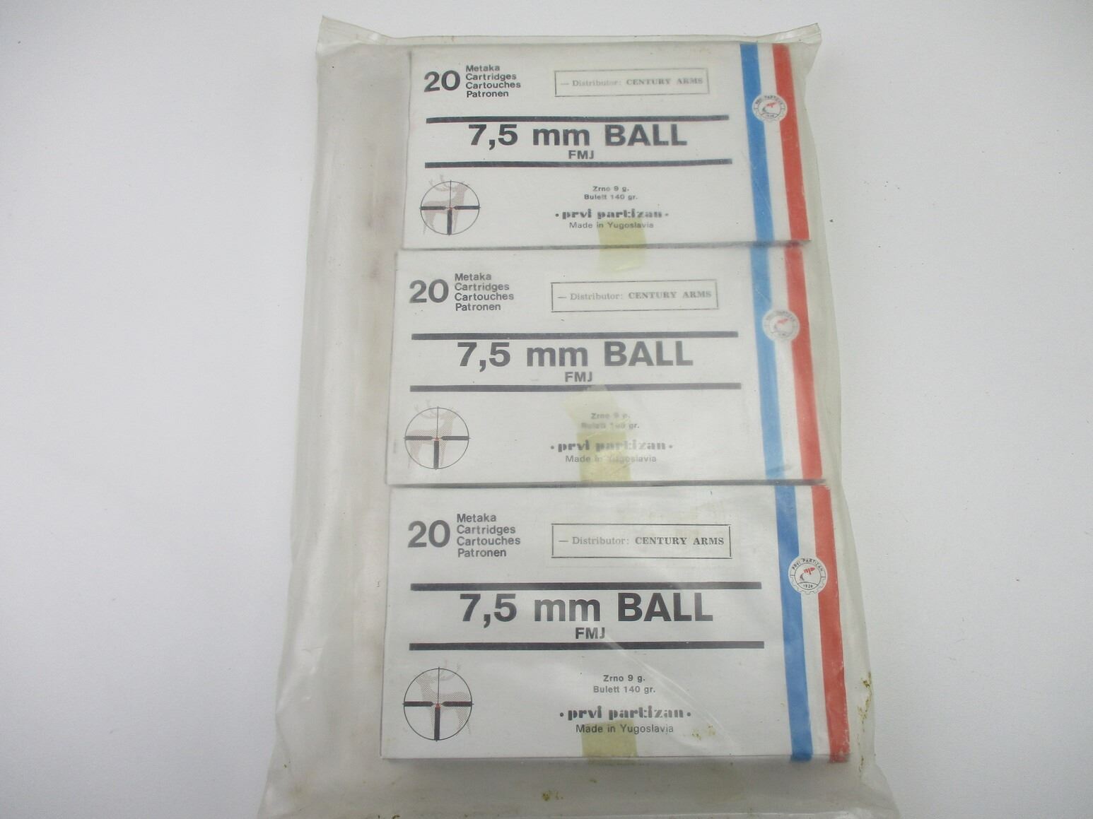 PPU 7.5X55 SWISS AMMO, 60 RNDS, 140 GRNS, FMJ, THERE ARE NEW SHIPPING RESTRICTIONS, PLEASE MAKE SURE YOU HAVE READ AND CONFIRMED WE CAN SHIP TO YOU BEFORE BIDDING ON THIS LOT. PLEASE SEE LOT 0 IN THIS SESSION. NO REFUNDS WILL BE ISSUED, OR BIDS RETRACTED