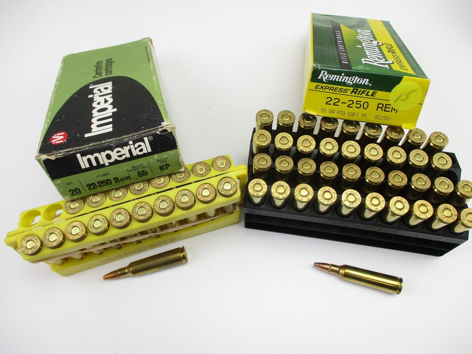 ASSORTED .22-250 REM AMMO, 53 RNDS, 5 BRASS, 55 GRNS (STATED ON BOX, NOT CONFIRMED), MFG'S INCLUDE: REMINGTON, & IMPERIAL, THERE ARE NEW SHIPPING RESTRICTIONS, PLEASE MAKE SURE YOU HAVE READ AND CONFIRMED WE CAN SHIP TO YOU BEFORE BIDDING ON THIS LOT. PLEASE SEE LOT 0 IN THIS SESSION. NO REFUNDS WILL BE ISSUED, OR BIDS RETRACTED