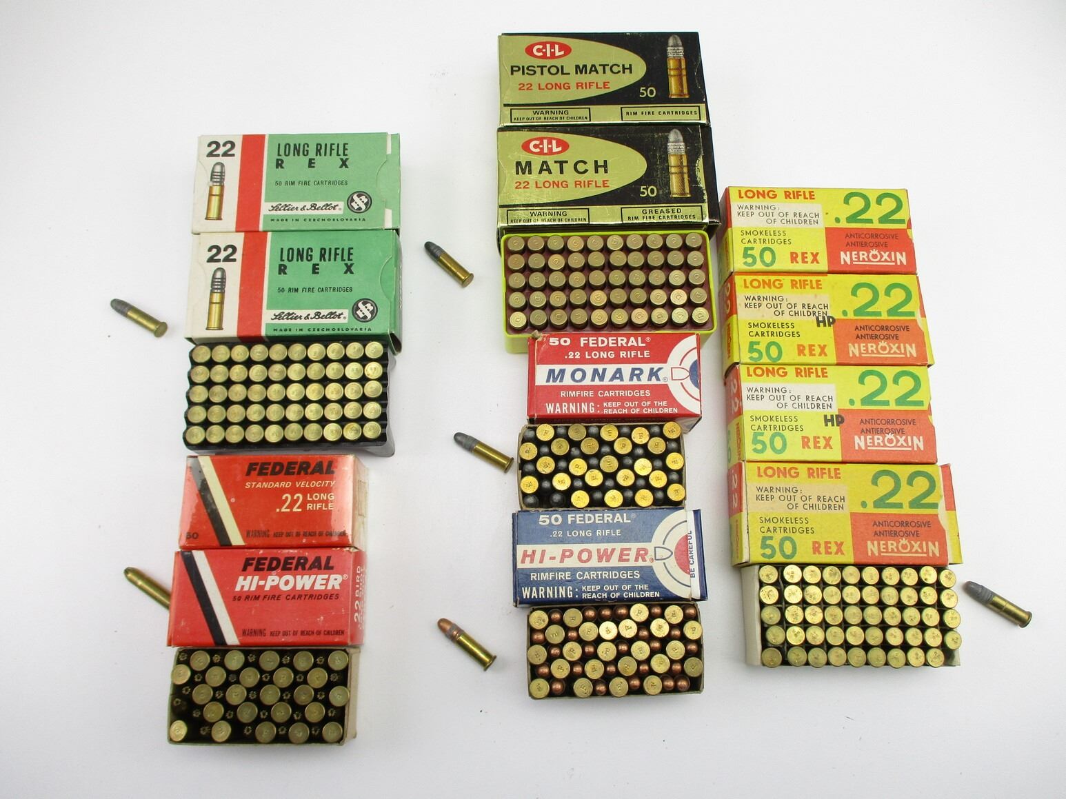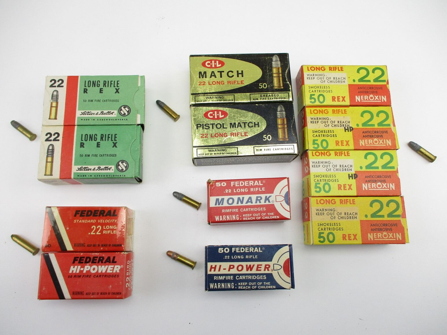 ASSORTED .22 LONG RIFLE AMMO, 578 RNDS, VARIOUS MFG'S INCLUDING: SELLIER & BELLOT, CIL IMPERIAL, FEDERAL, ETC., VARIOUS BULLET TYPES, THERE ARE NEW SHIPPING RESTRICTIONS, PLEASE MAKE SURE YOU HAVE READ AND CONFIRMED WE CAN SHIP TO YOU BEFORE BIDDING ON THIS LOT. PLEASE SEE LOT 0 IN THIS SESSION. NO REFUNDS WILL BE ISSUED, OR BIDS RETRACTED
