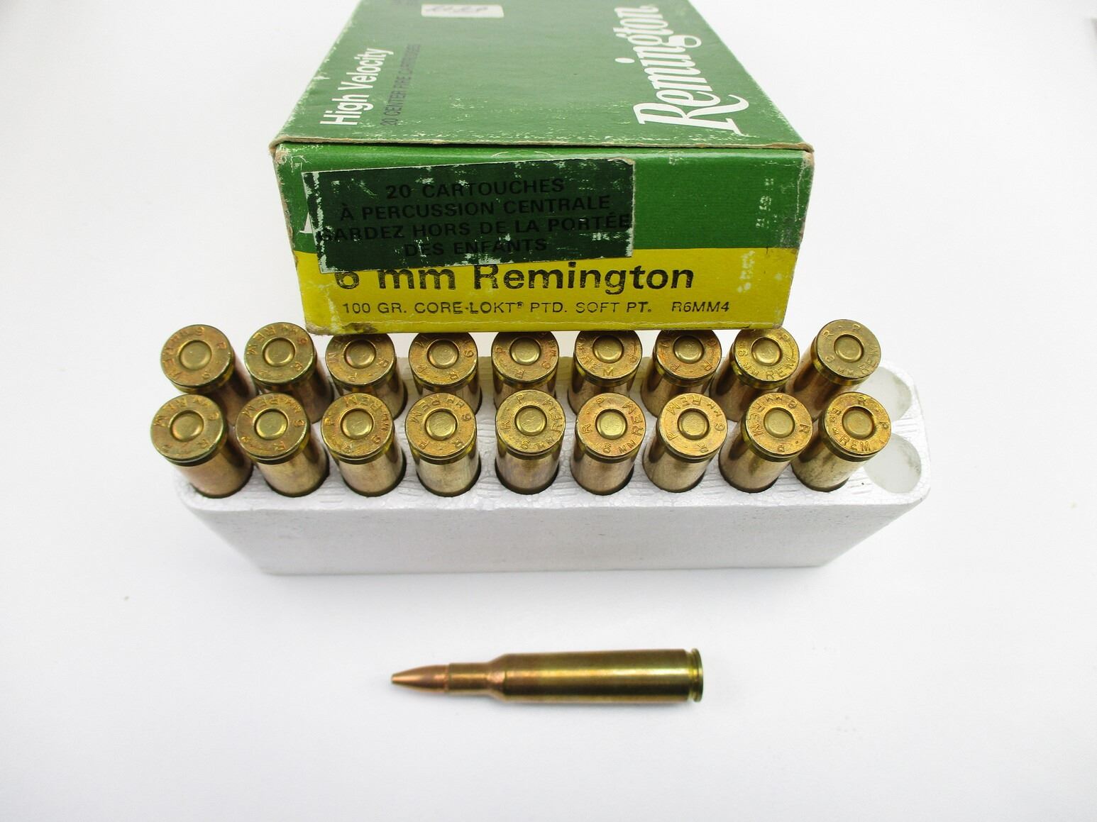 REMINGTON 6MM REM AMMO, 19 RNDS, 100 GRNS (STATED ON BOX, NOT CONFIRMED), CORE-LOKT POINTED SOFT POINT, THERE ARE NEW SHIPPING RESTRICTIONS, PLEASE MAKE SURE YOU HAVE READ AND CONFIRMED WE CAN SHIP TO YOU BEFORE BIDDING ON THIS LOT. PLEASE SEE LOT 0 IN THIS SESSION. NO REFUNDS WILL BE ISSUED, OR BIDS RETRACTED